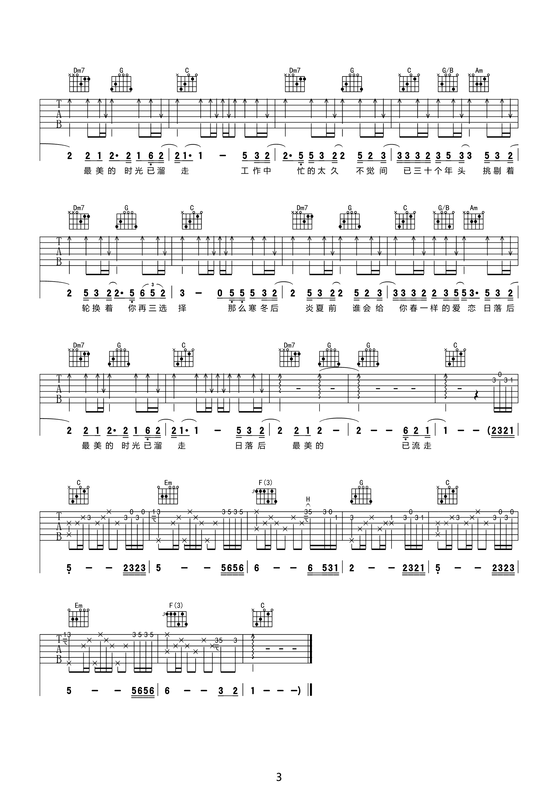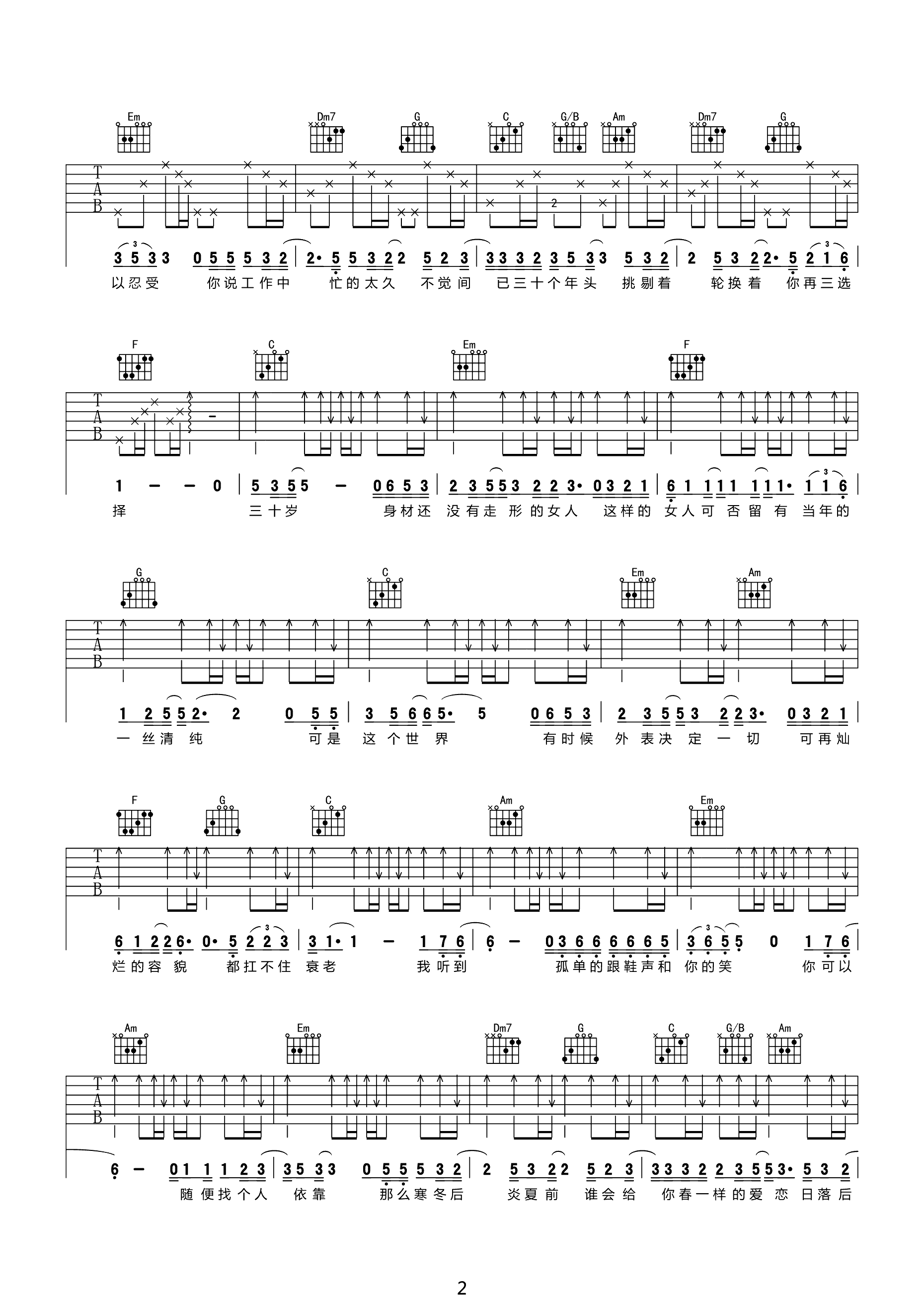 笔记吉他谱_周笔畅_G调入门版_简单弹唱