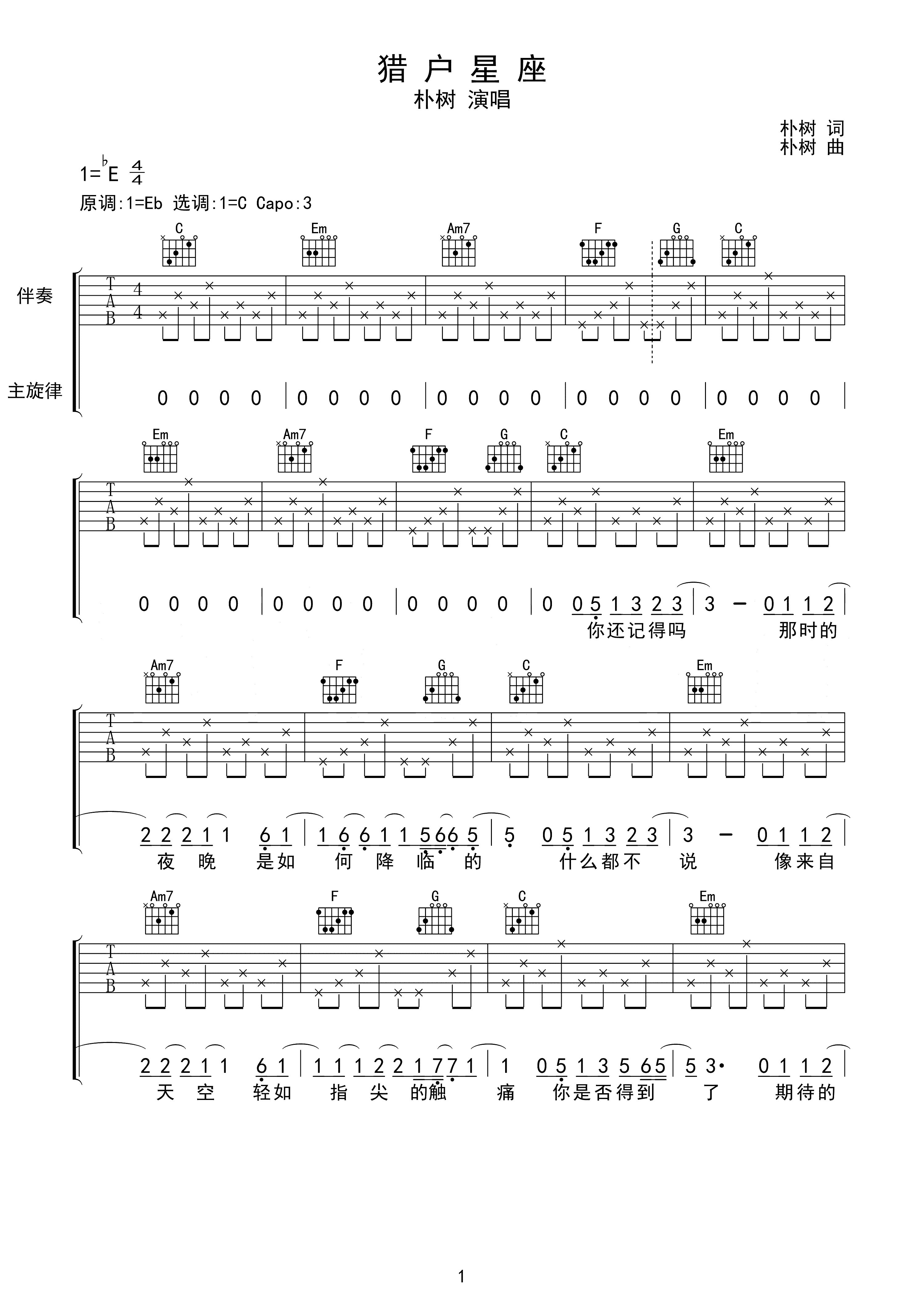 今天也想见到你吉他谱_焦迈奇_C调_高清
