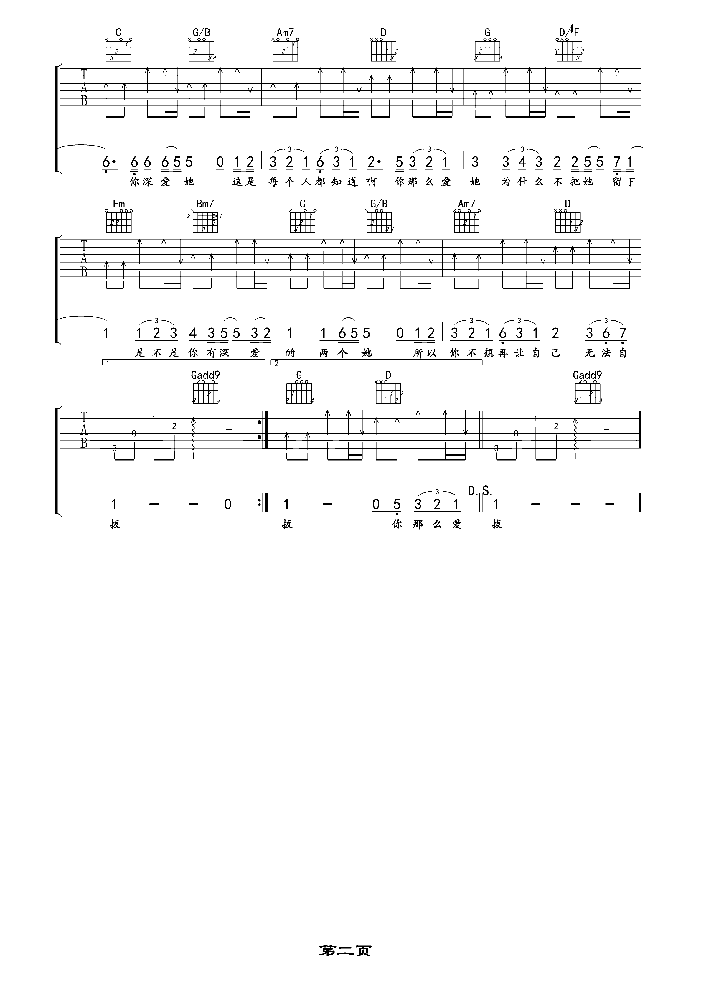 广东十年爱情故事吉他谱 D调弹唱谱 吉