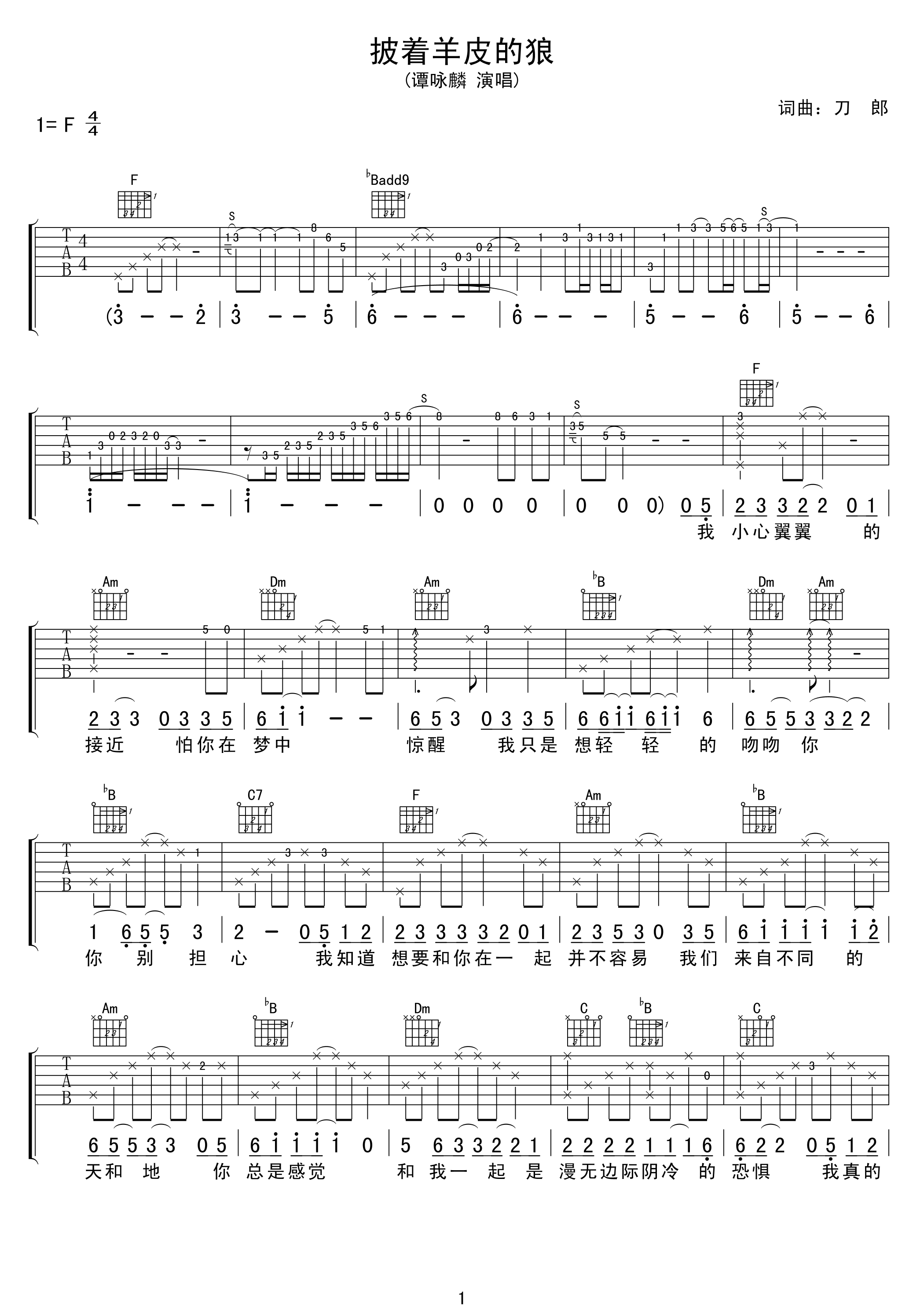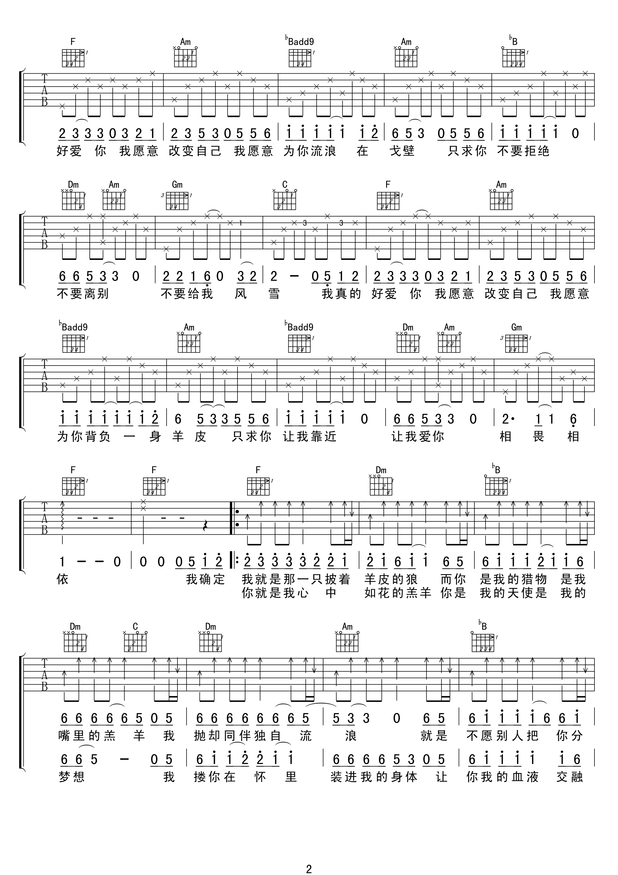吉他谱 | 热门弹唱《披着羊皮的狼》