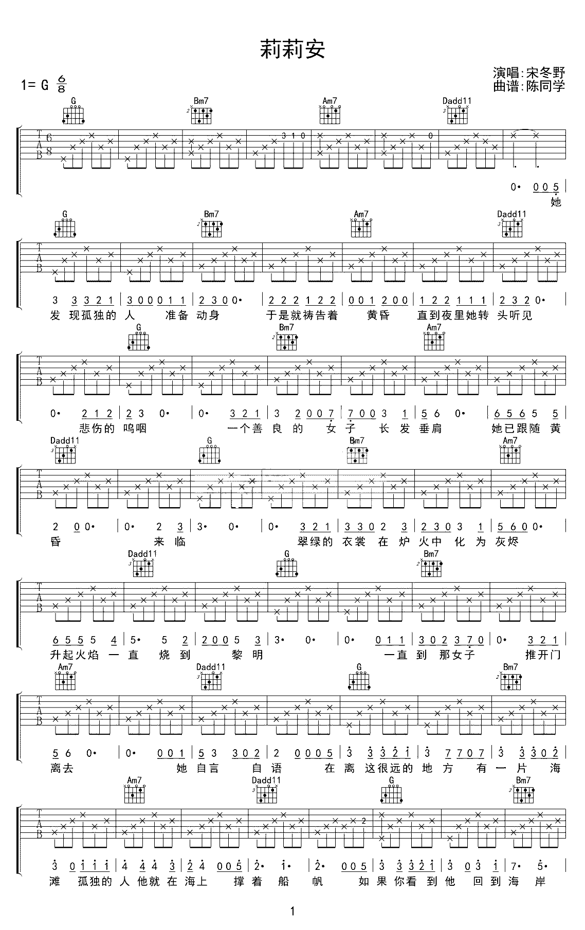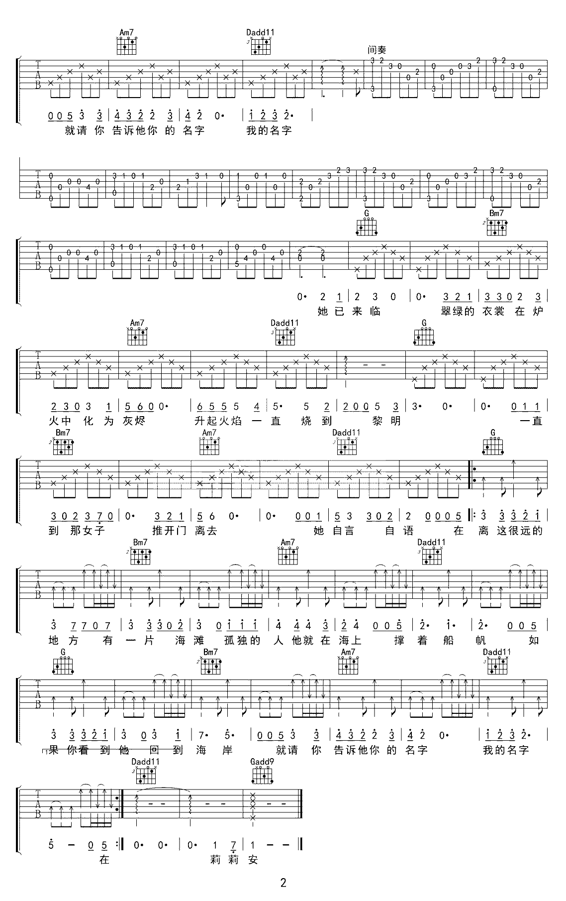 吉他谱 | 热门弹唱《莉莉安》
