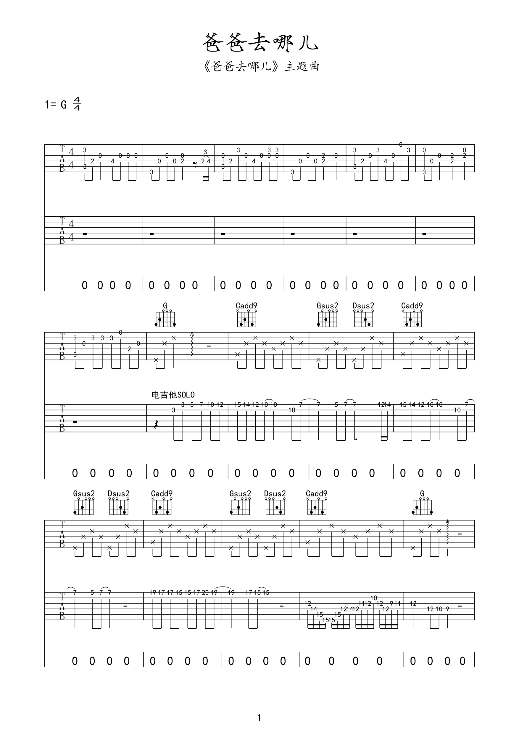 吉他谱 | 热门弹唱《爸爸去哪儿》
