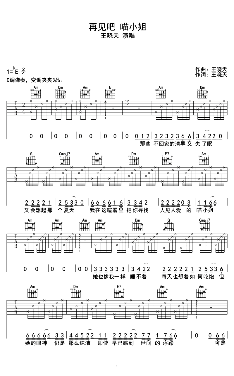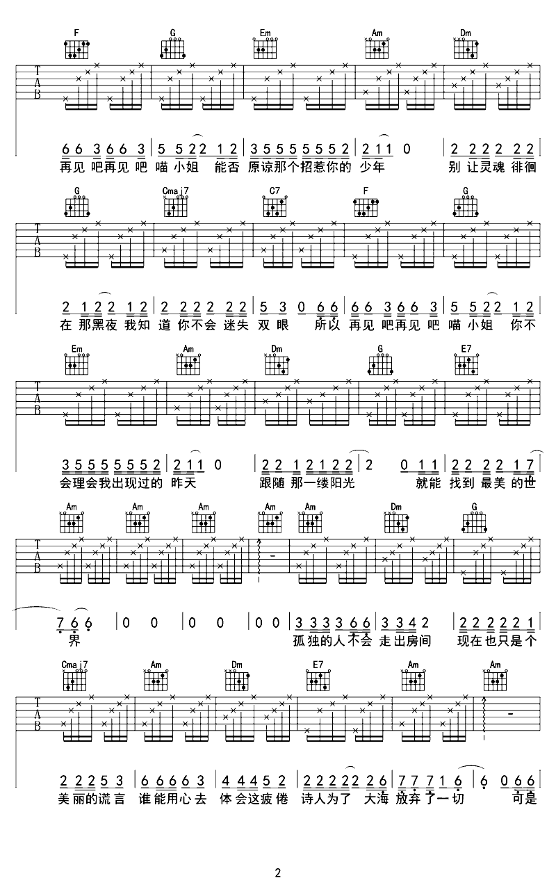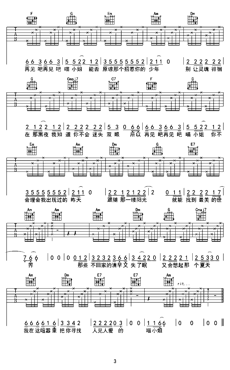 吉他谱 | 热门弹唱《再见吧 喵小姐》