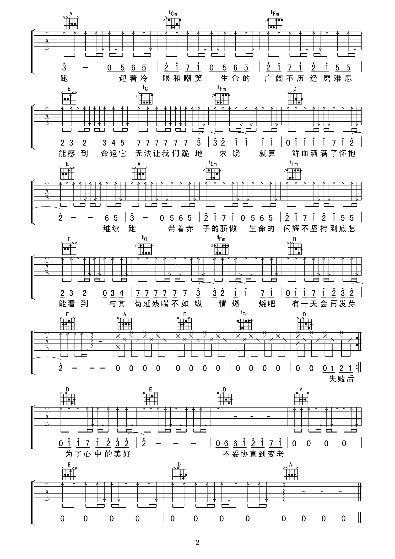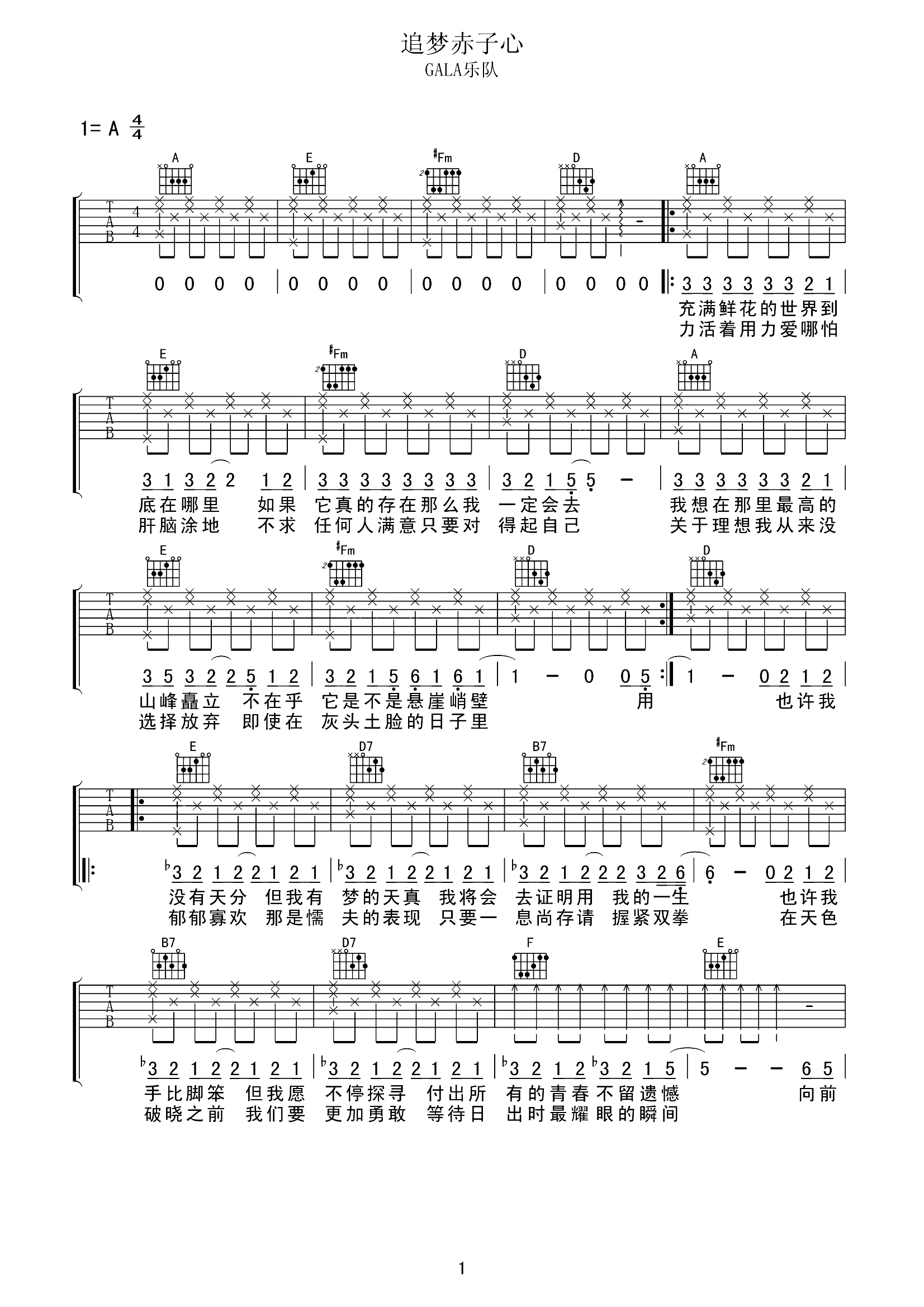 吉他谱 | 热门弹唱《追梦赤子心》