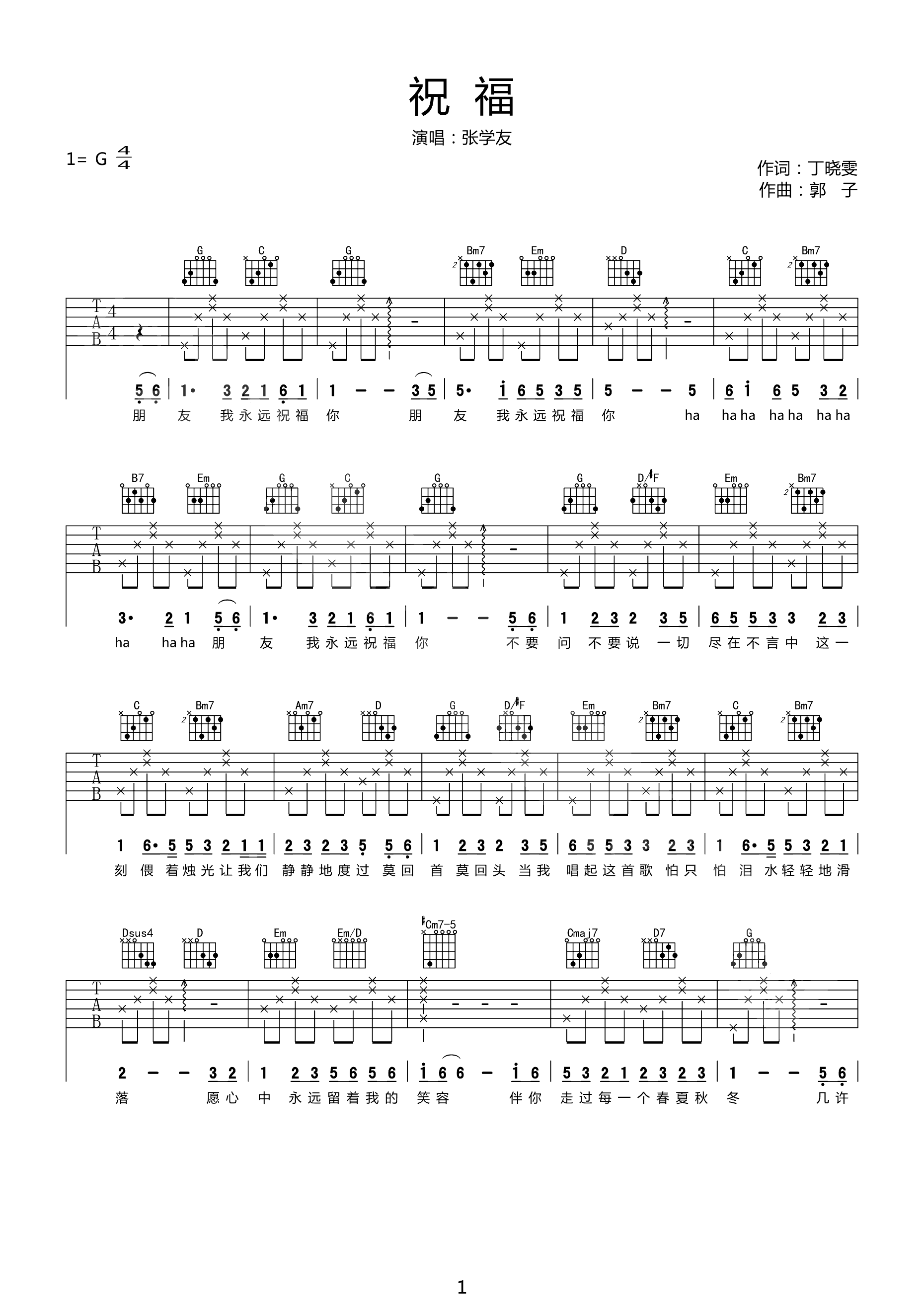 吉他谱 | 热门弹唱《祝福》