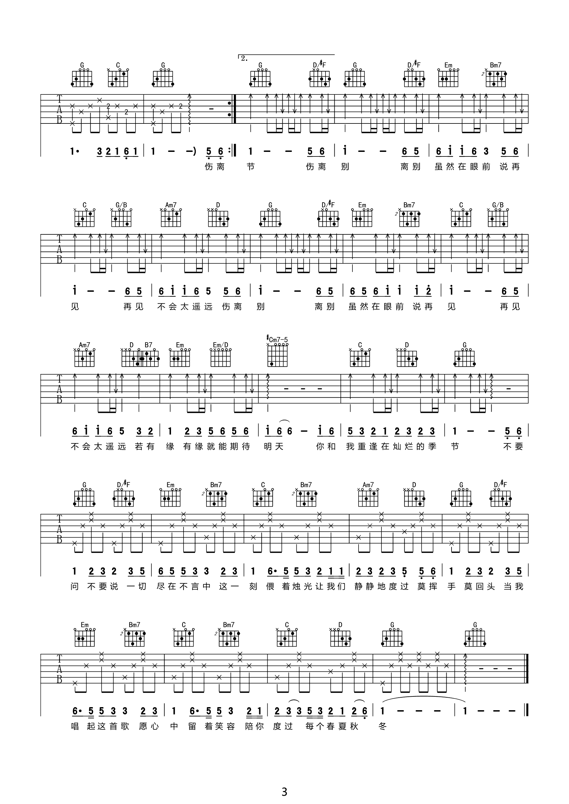 冬眠吉他谱_司南_C调弹唱谱_图片谱高清