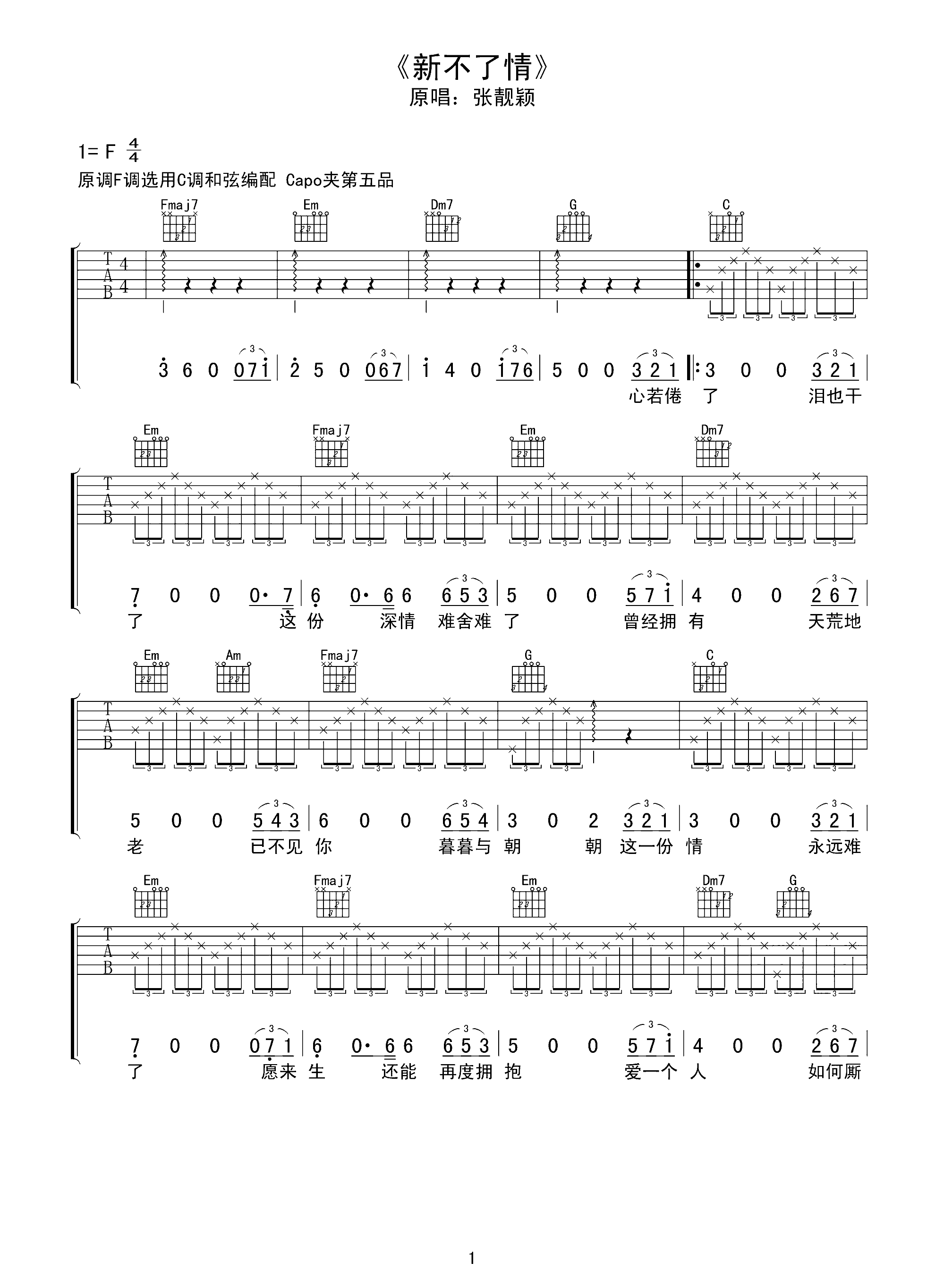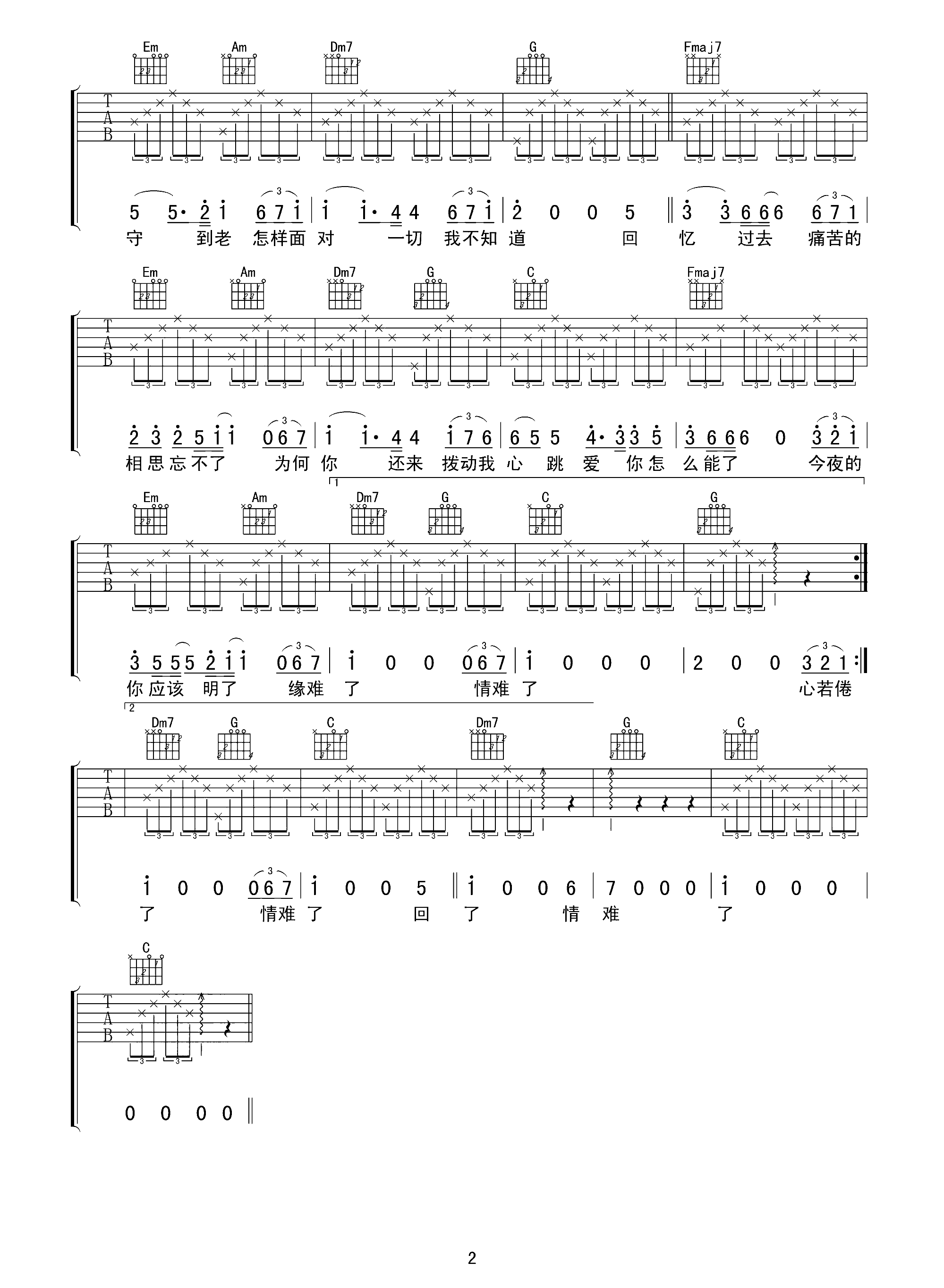 妄为吉他谱 谢春花 G调弹唱六线谱 高清