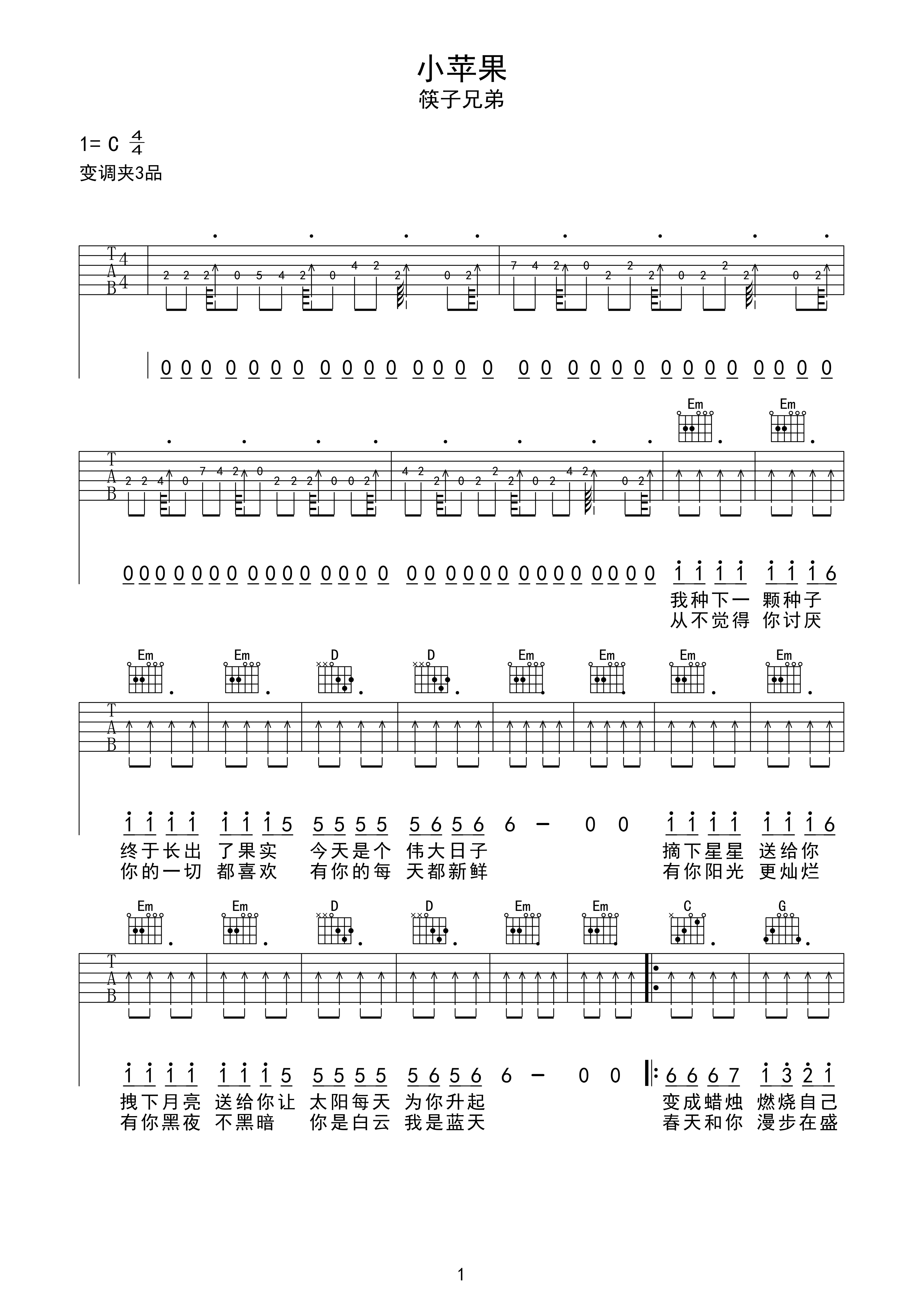 吉他谱 | 热门弹唱《小苹果》