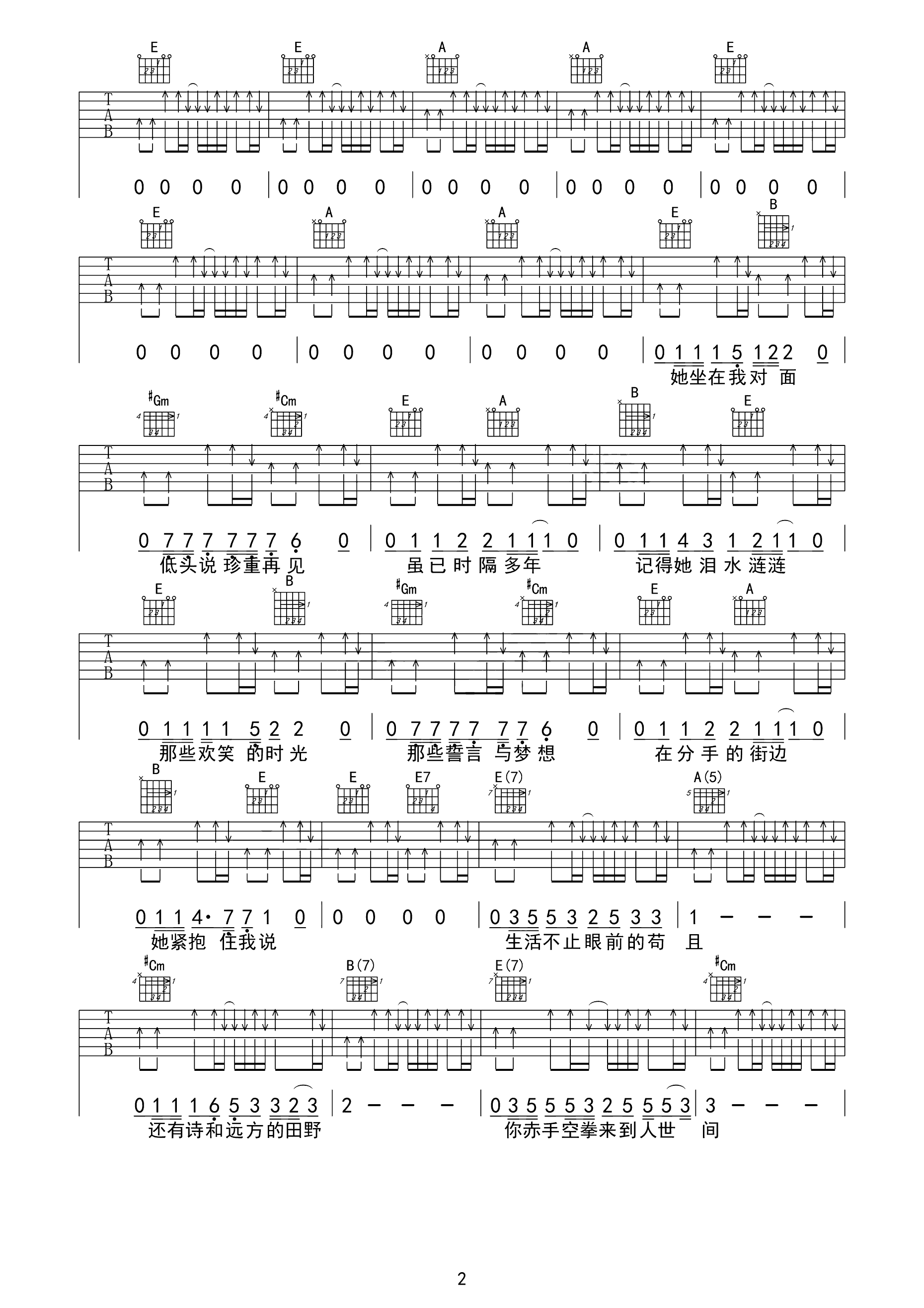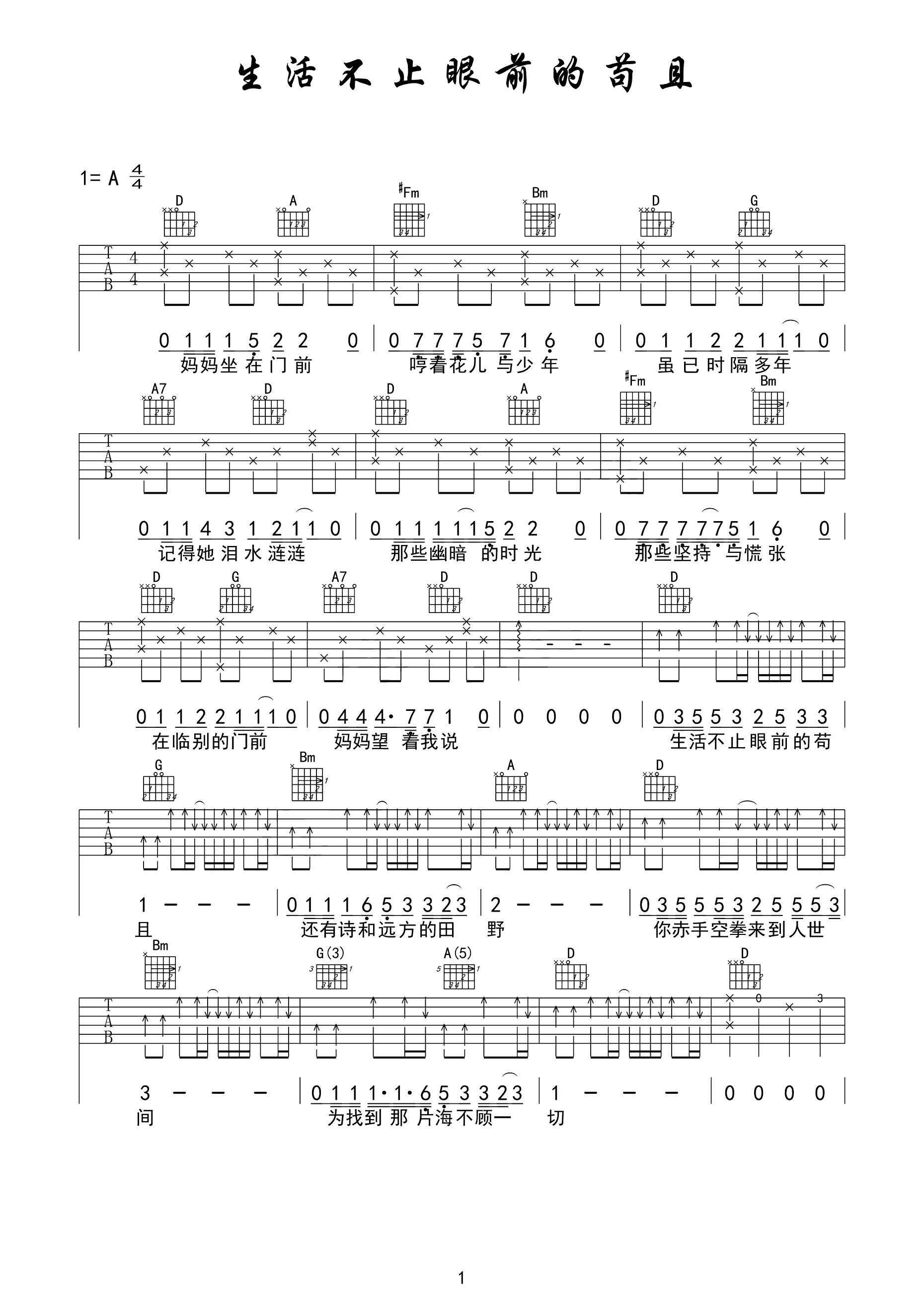 吉他谱 | 热门弹唱《生活不止眼前的苟且》