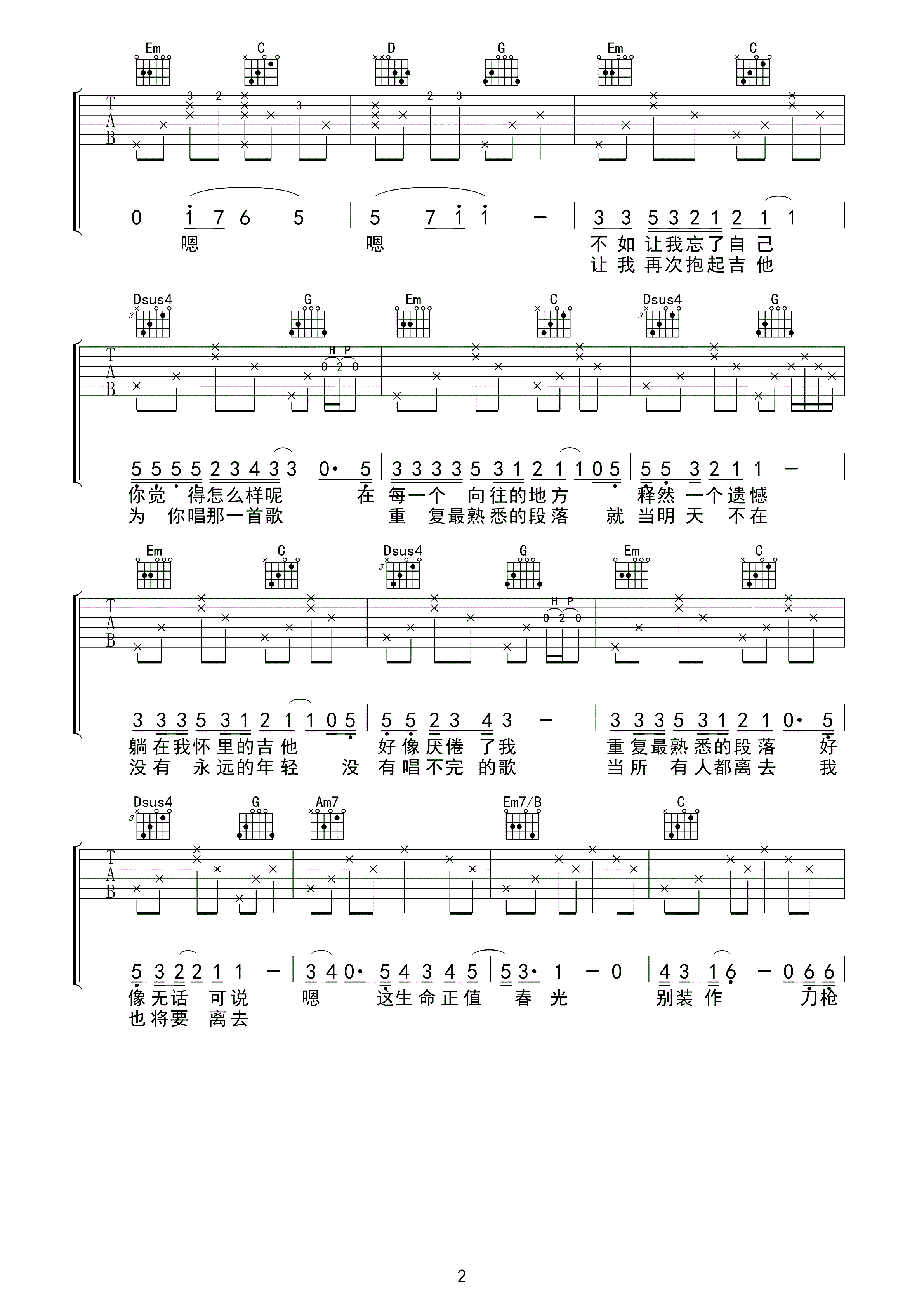海盗船长2.0吉他谱 风子VS花粥 G调弹唱
