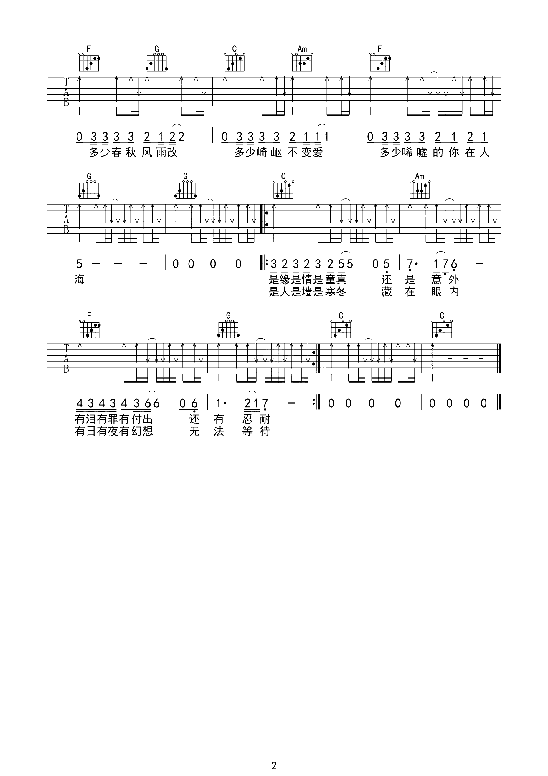 任然《飞鸟和蝉》吉他谱_C调指法_弹唱