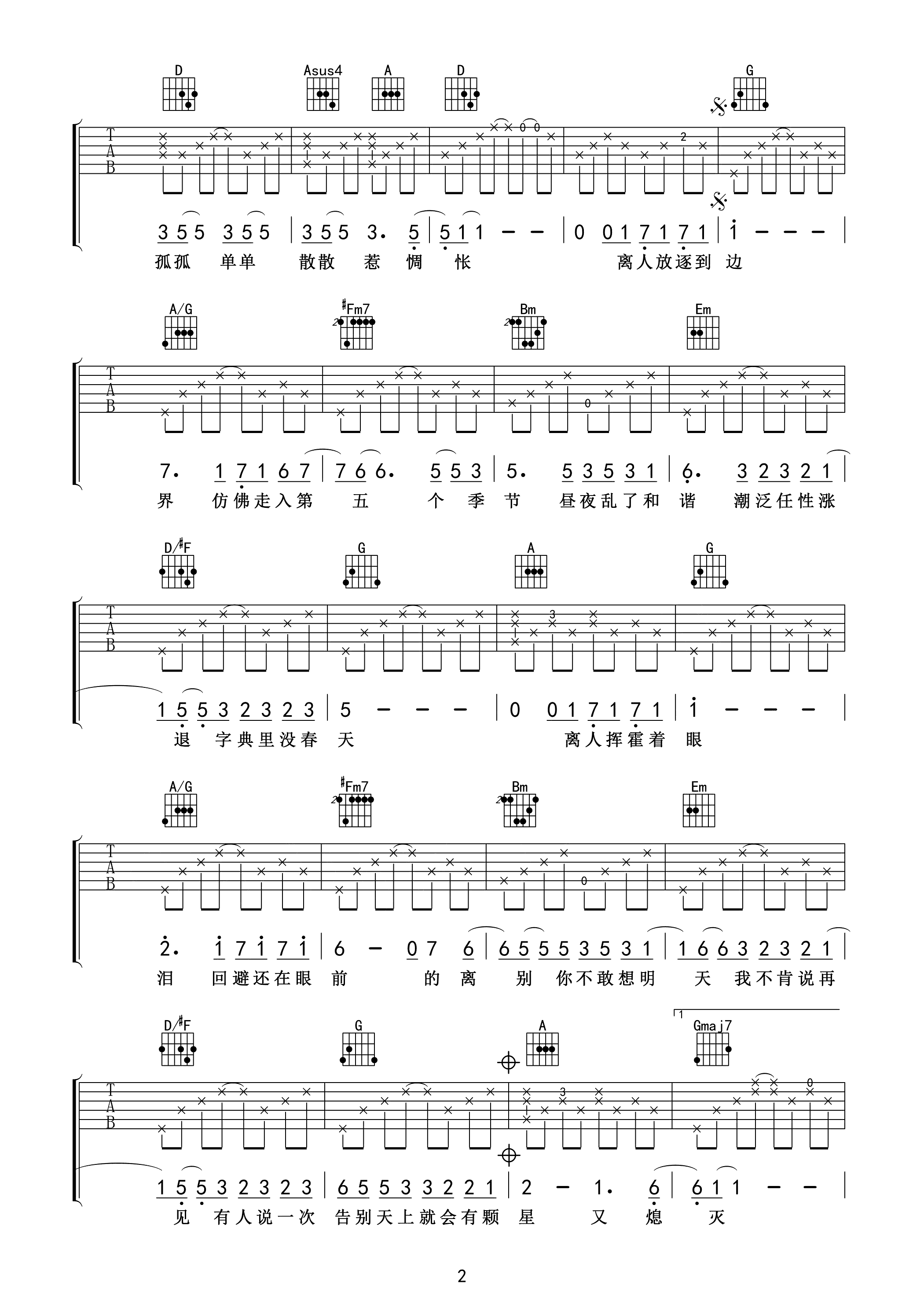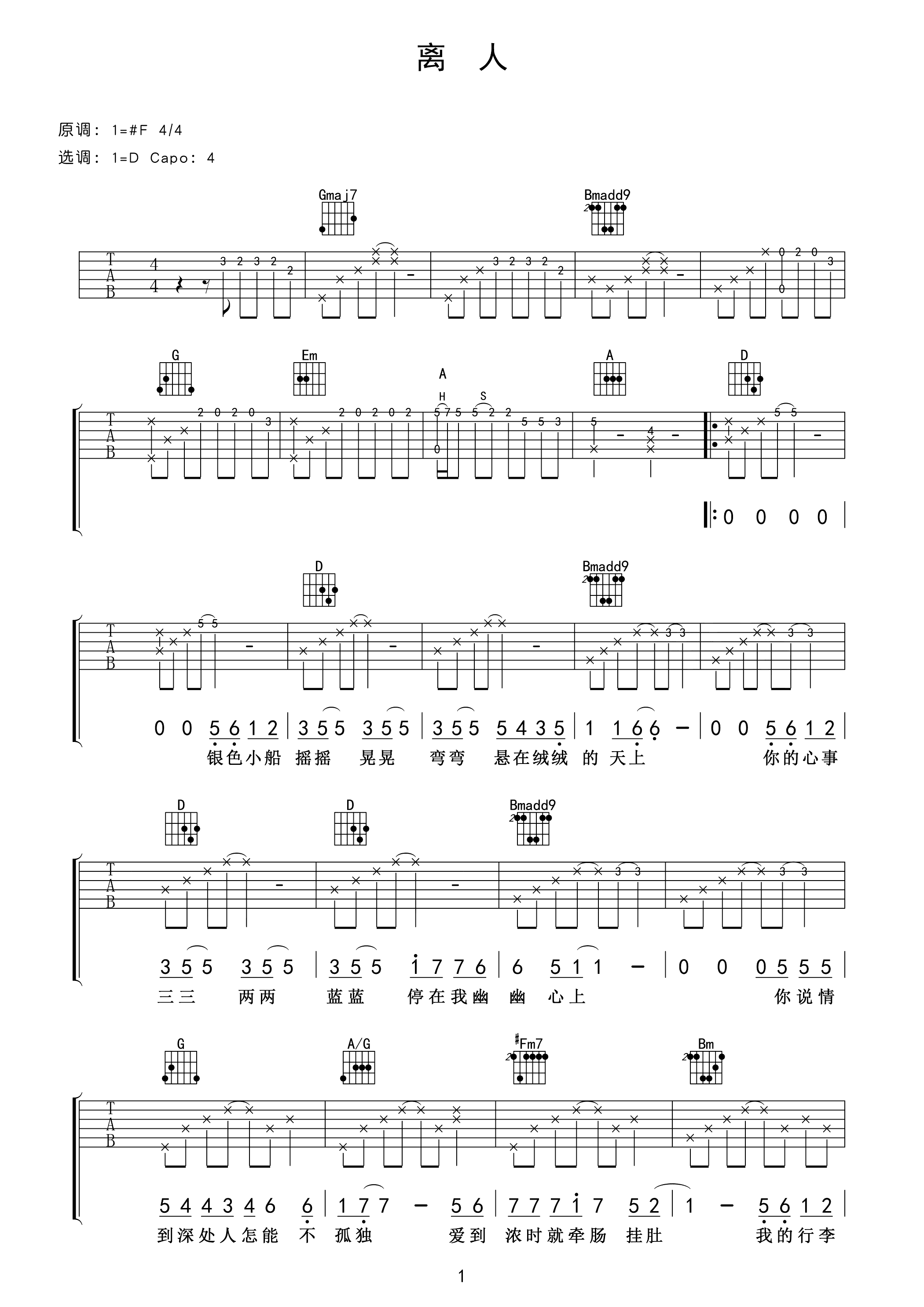 吉他谱 | 热门弹唱《离人》