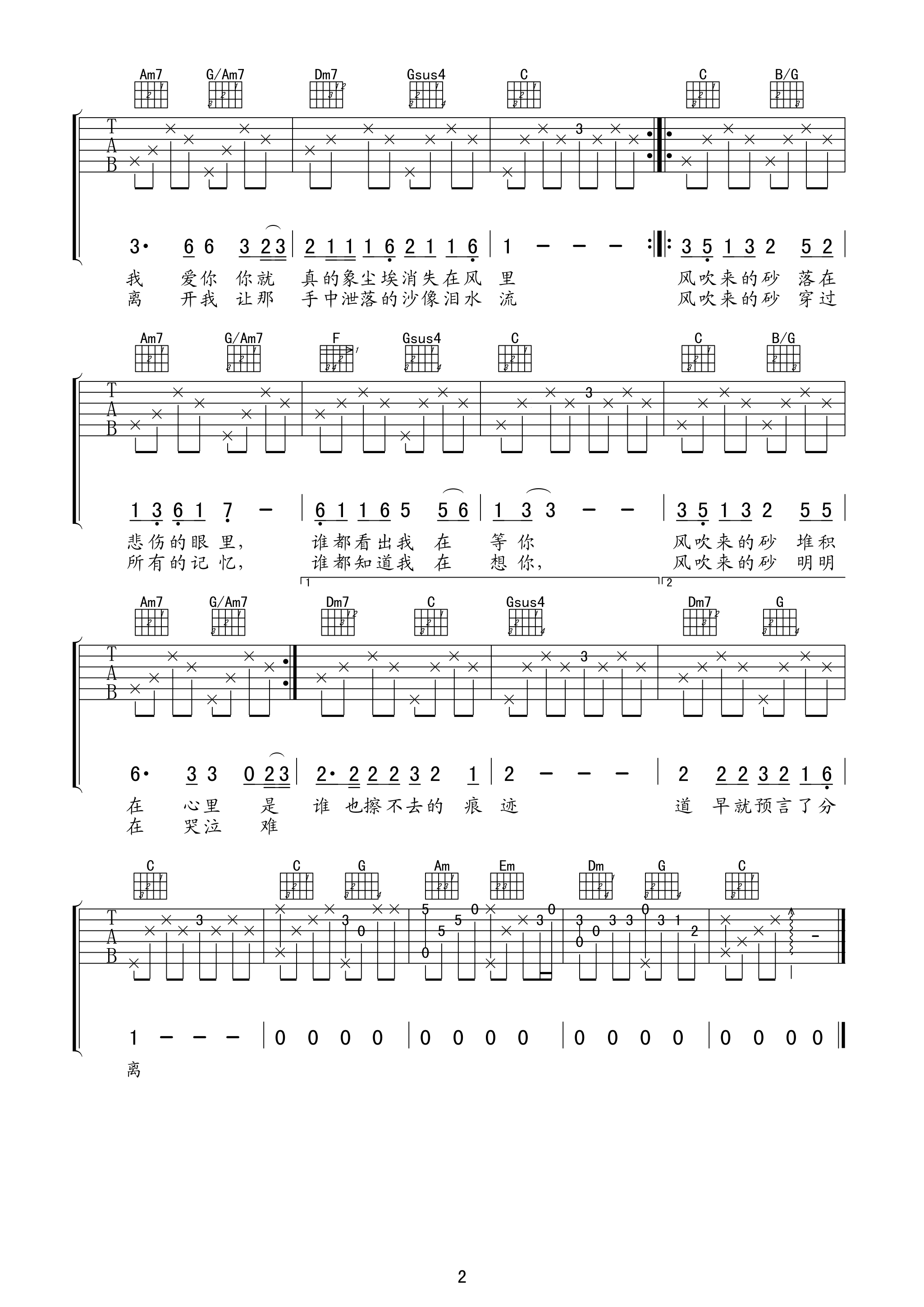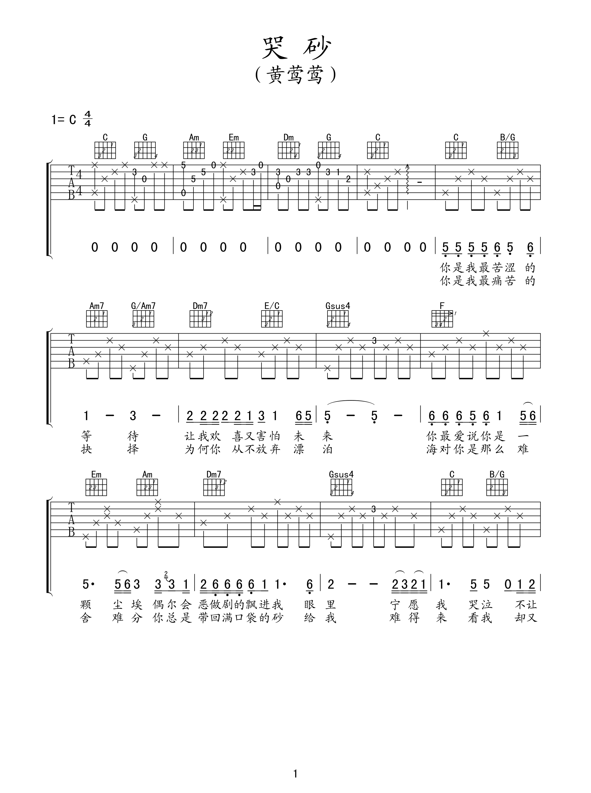 哭砂指弹谱_张惠妹_吉他独奏谱_指弹吉