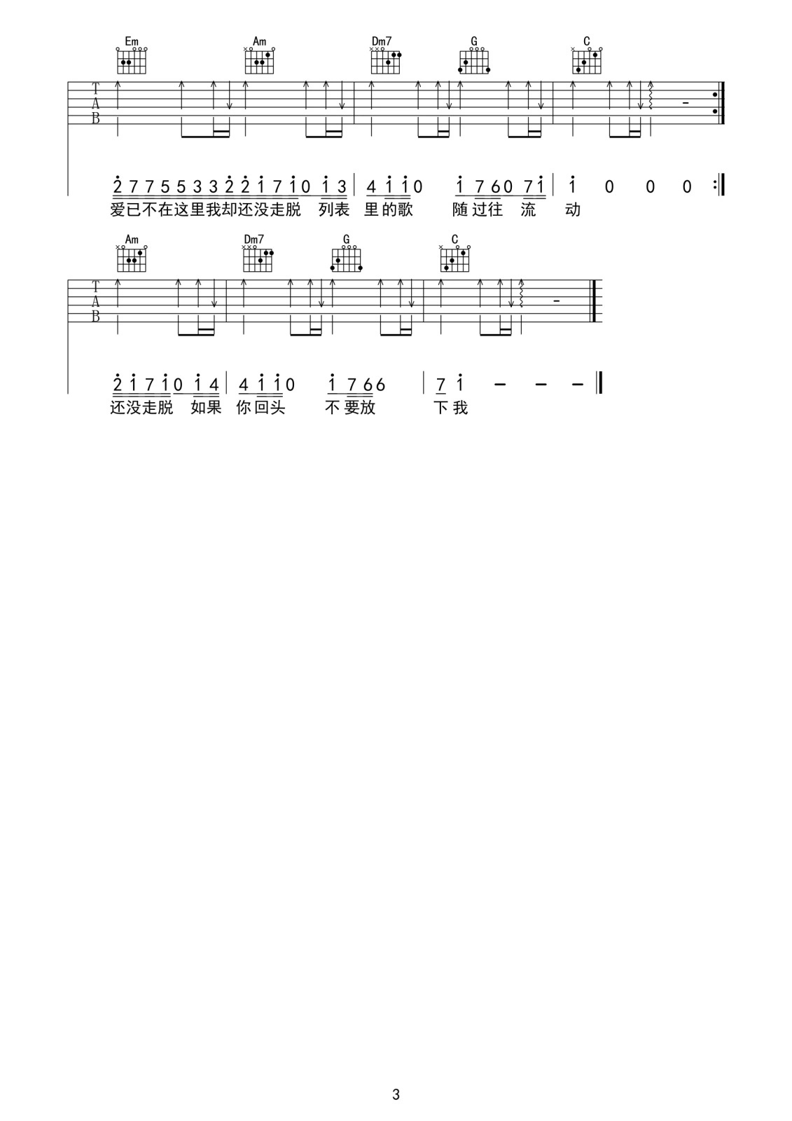 至此流年各天涯吉他谱 我不李志 G调弹