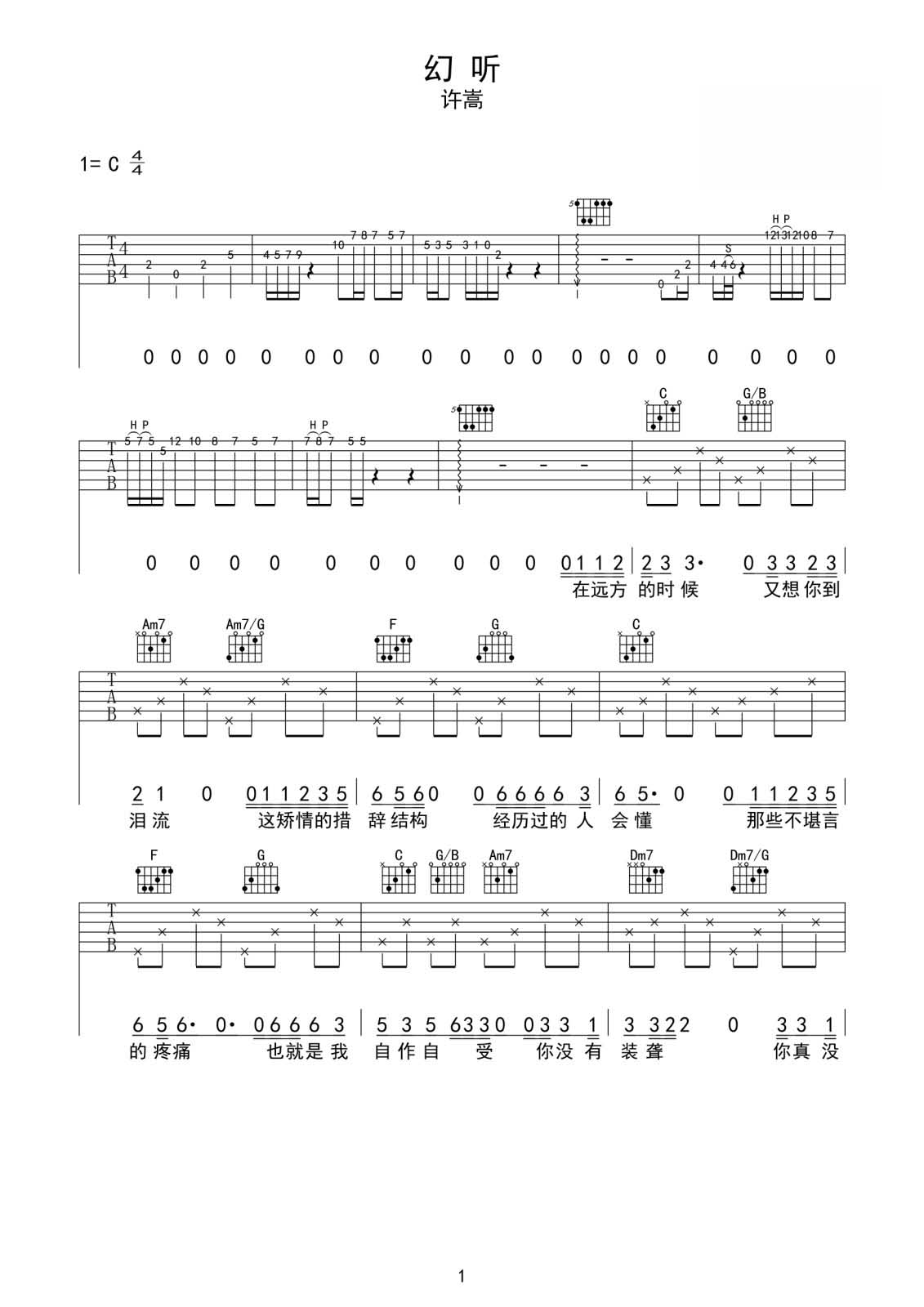 吉他谱 | 热门弹唱《幻听》