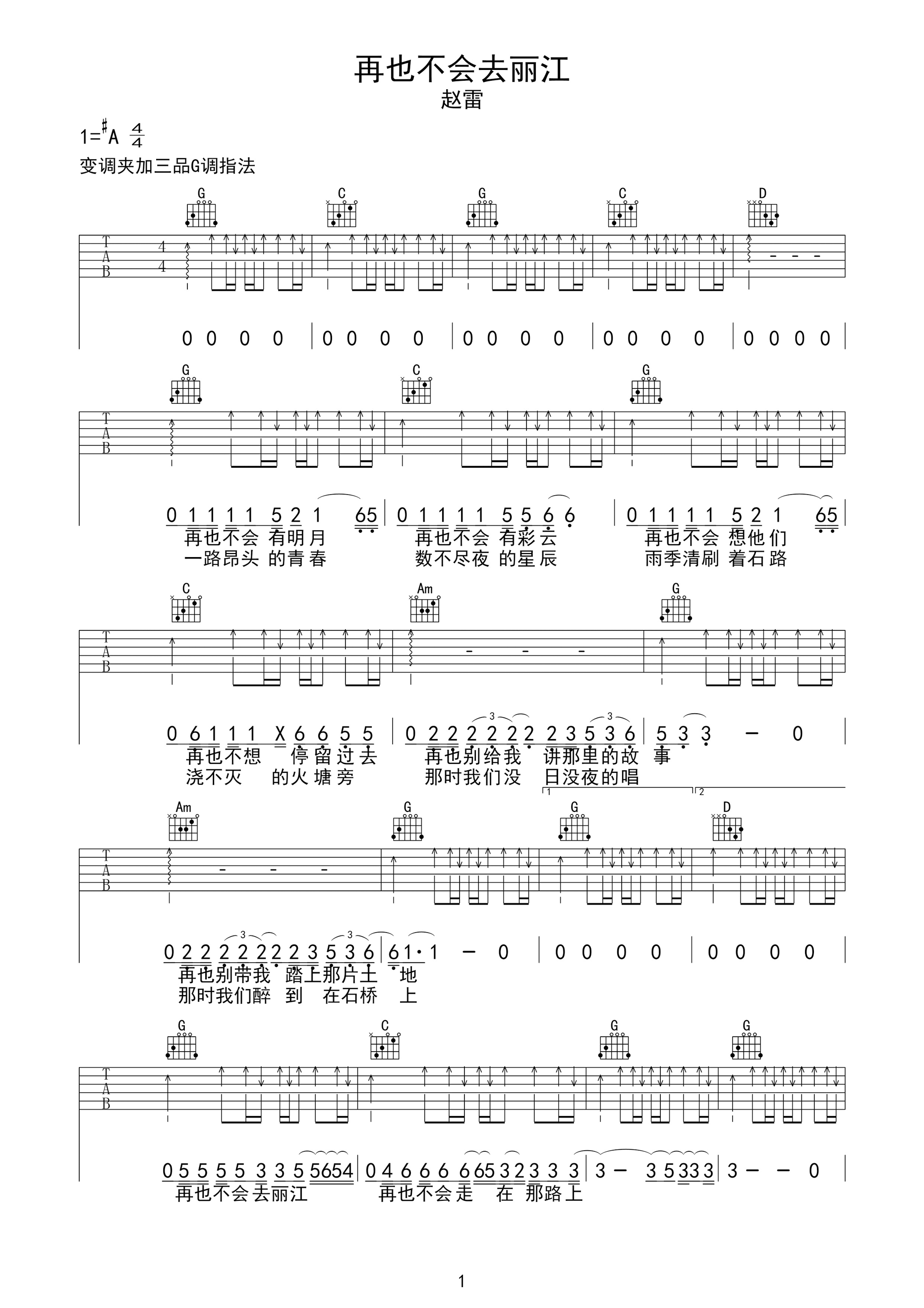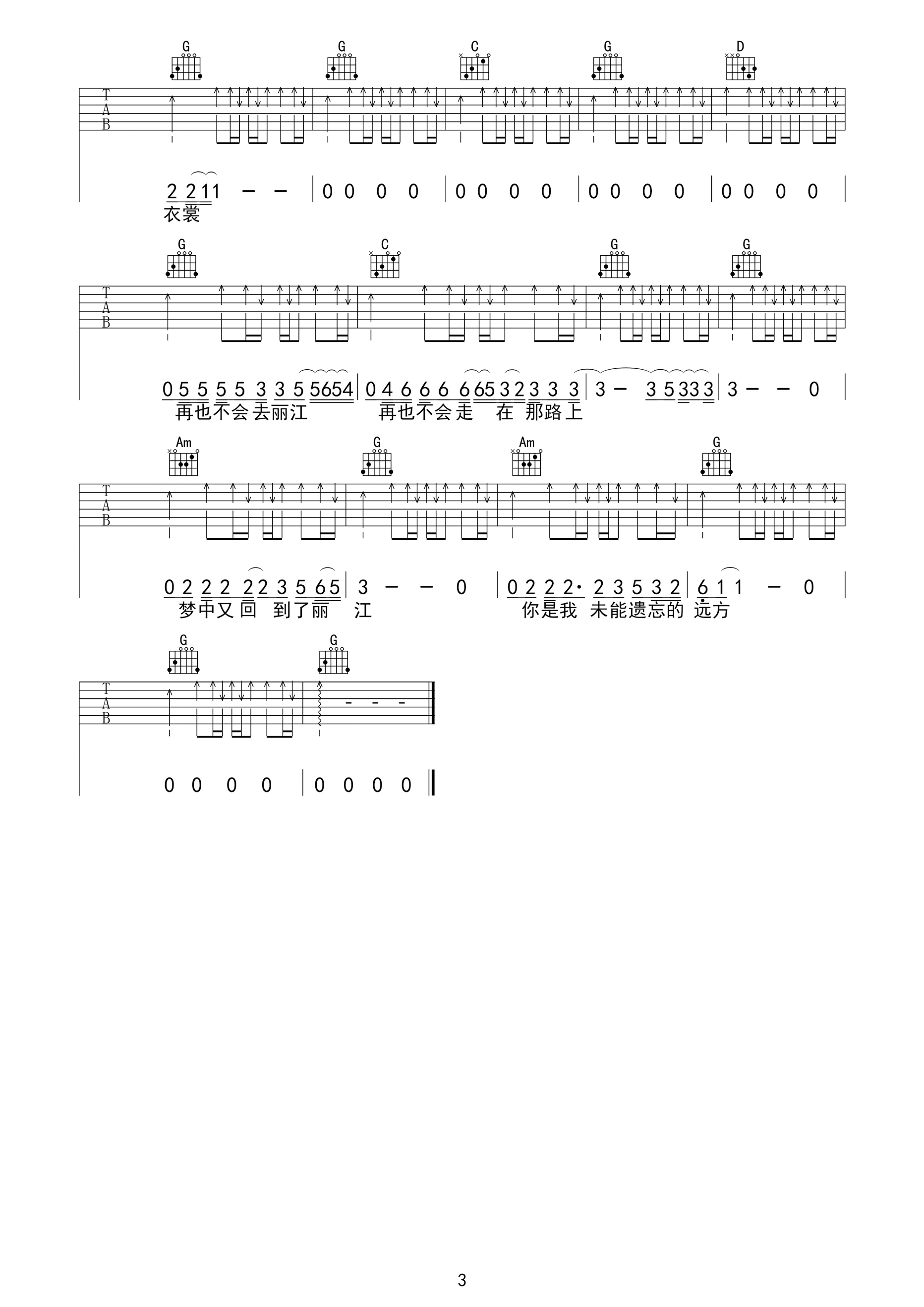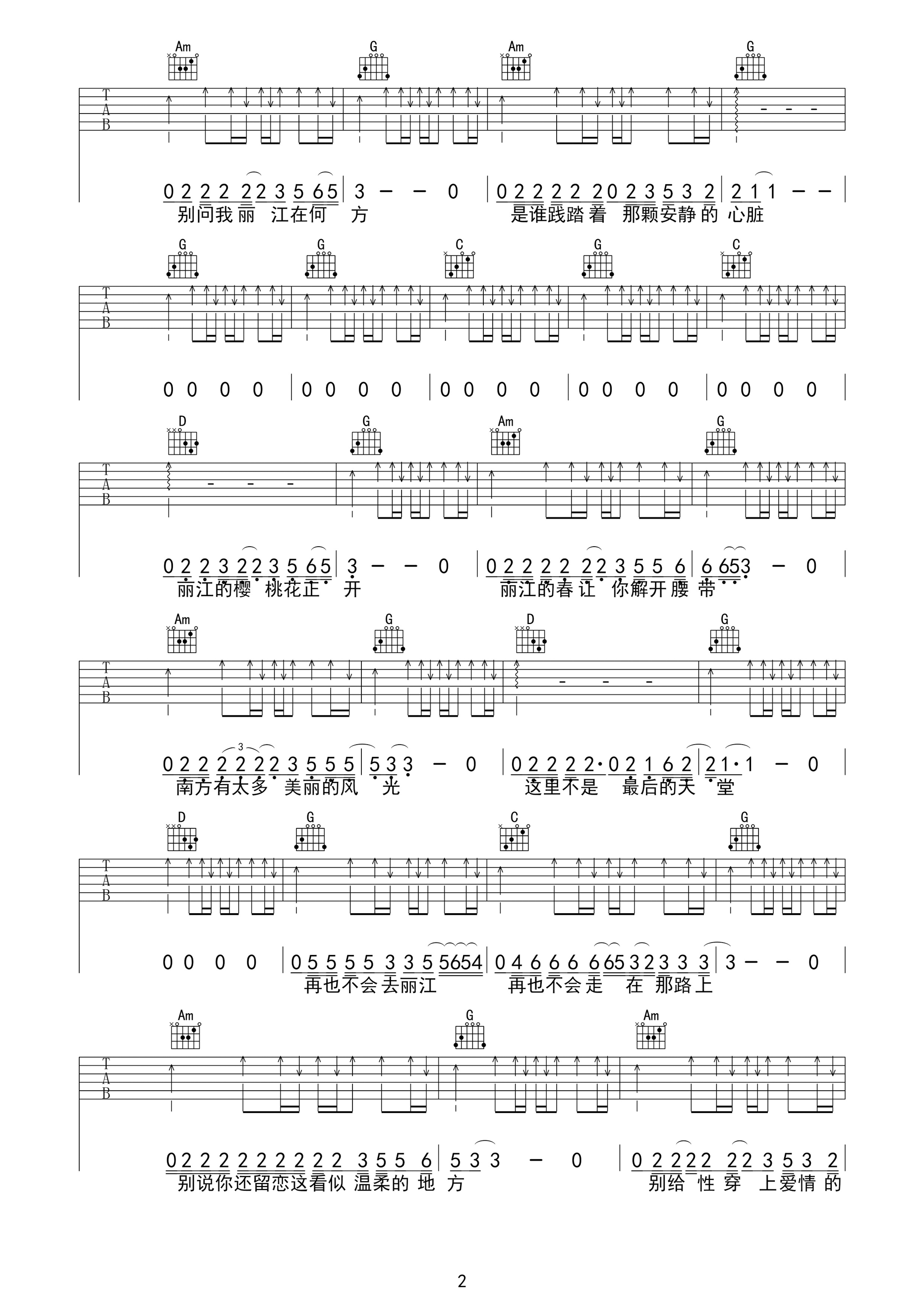 吉他谱 | 热门弹唱《再也不会去丽江》