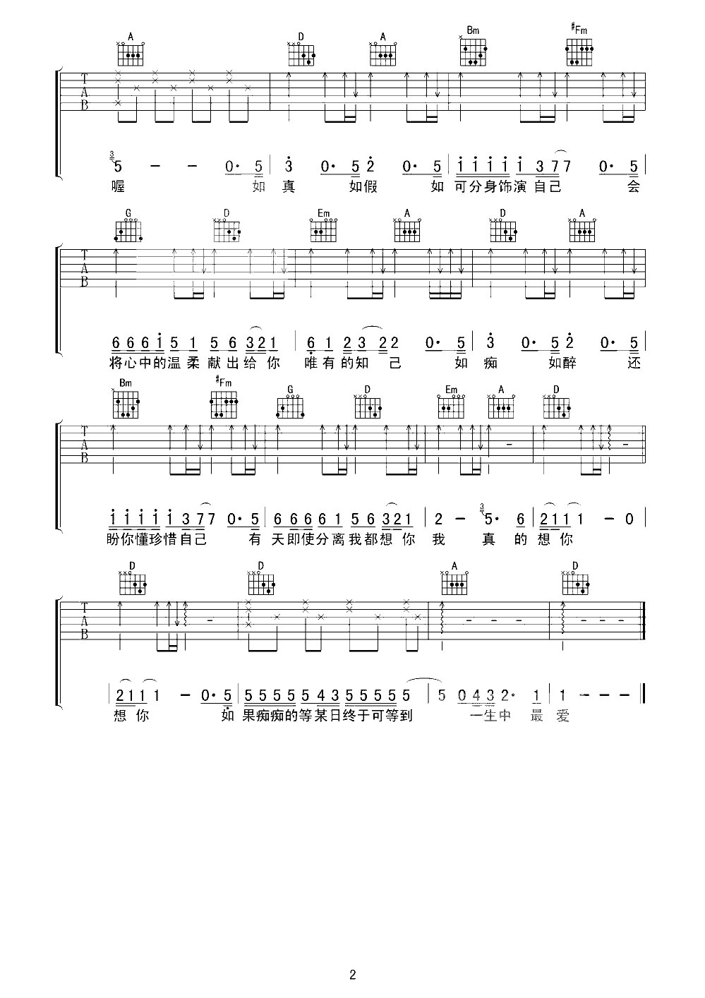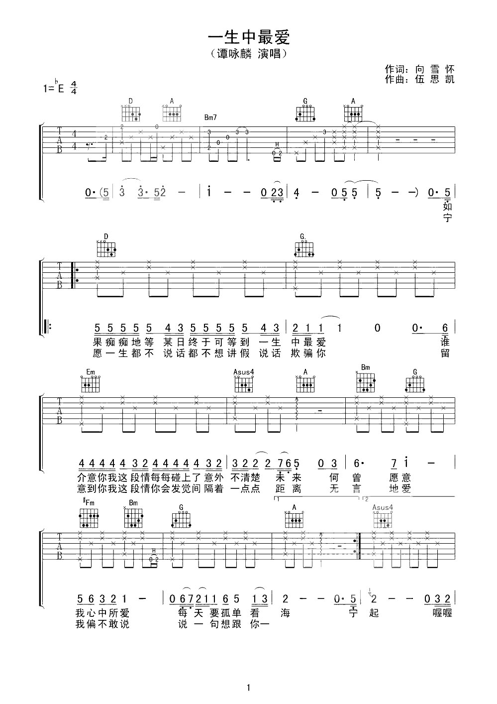 吉他谱 | 热门弹唱《一生中最爱》