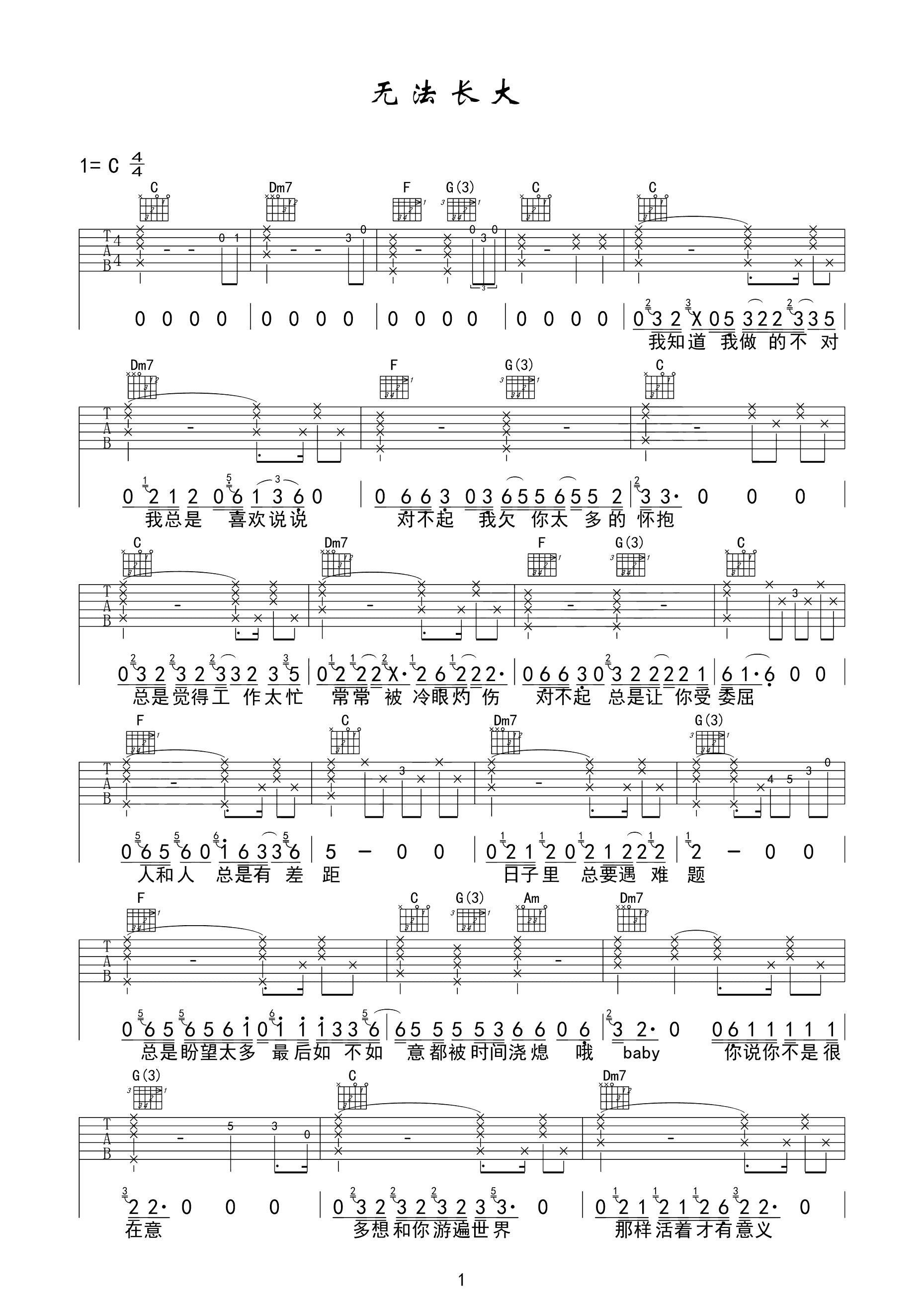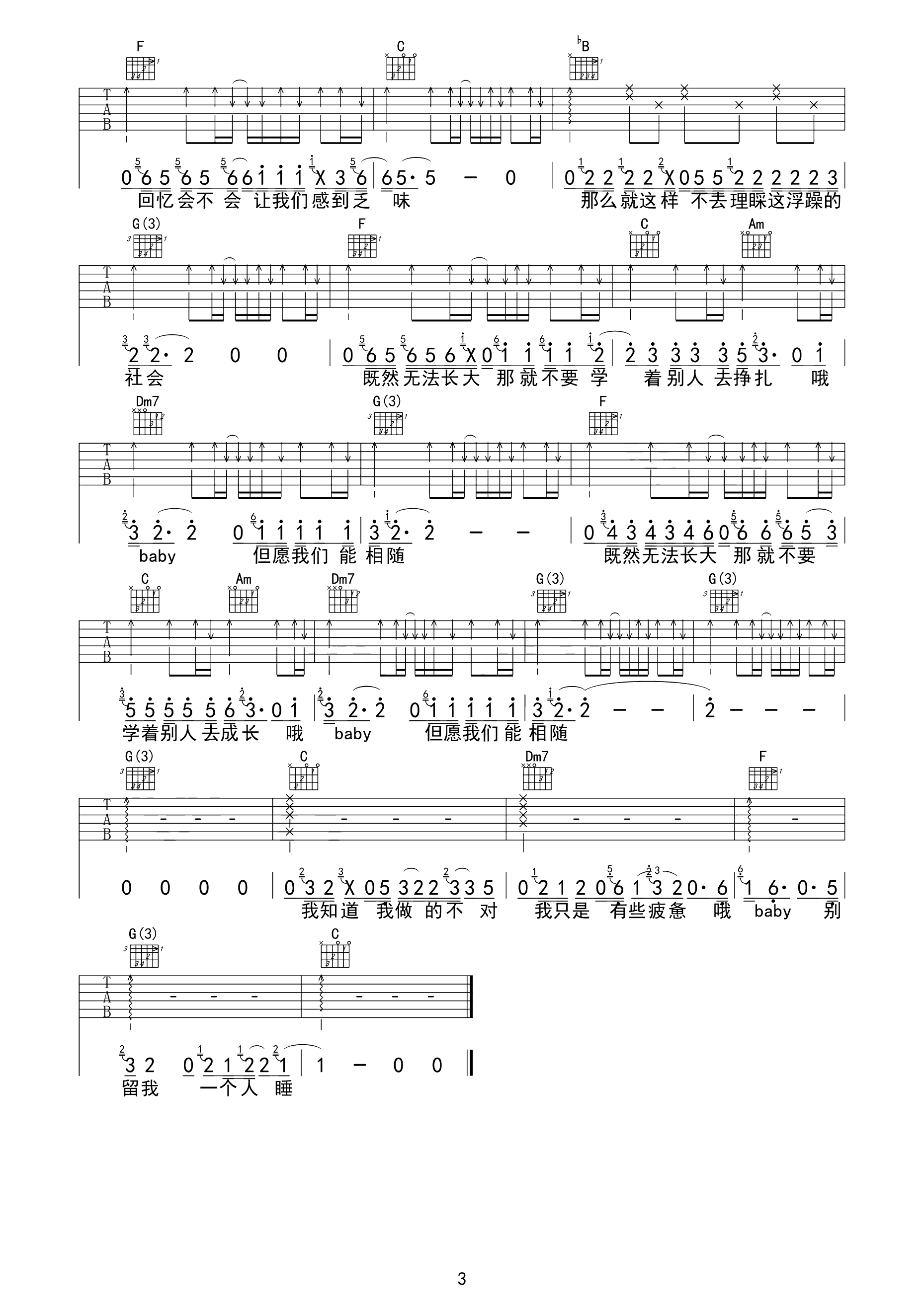 冬眠吉他谱_司南_C调六线谱_图片谱