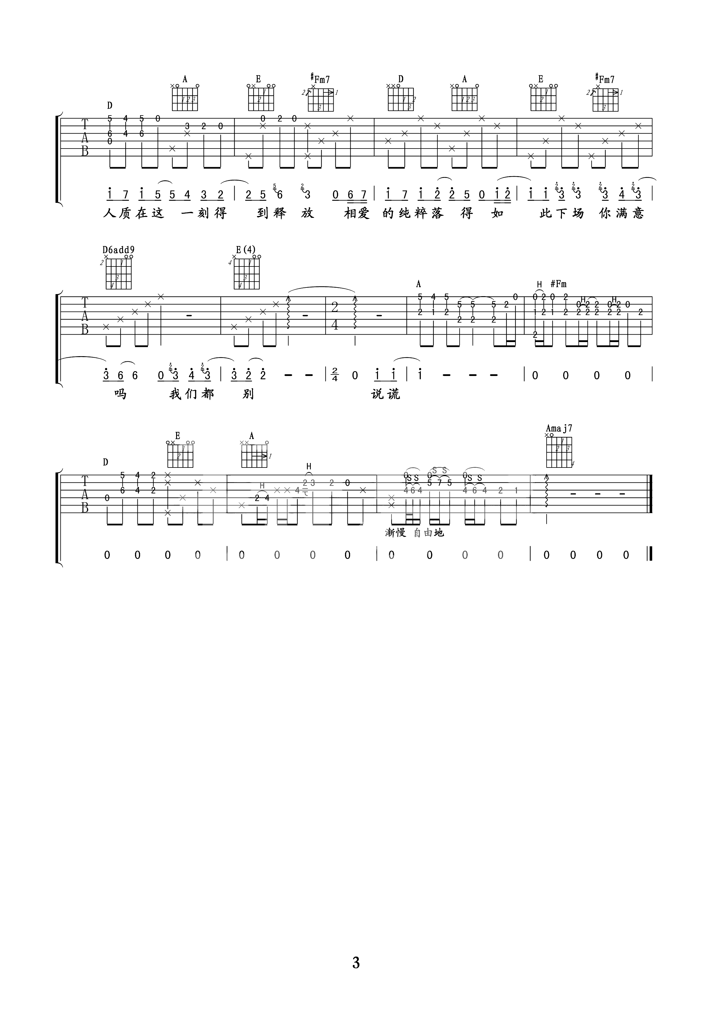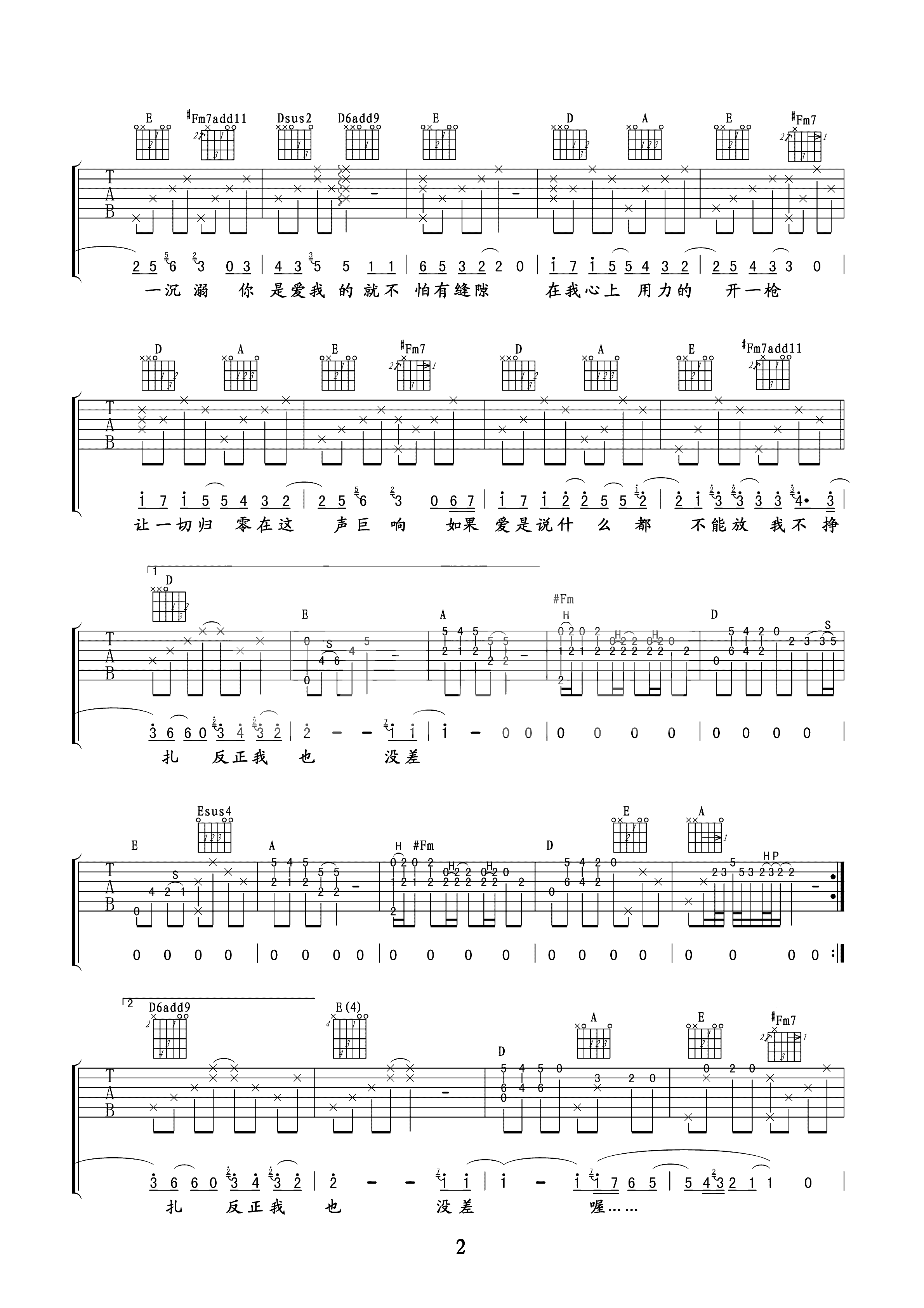 收敛吉他谱_不够_原版带前奏间奏_弹唱