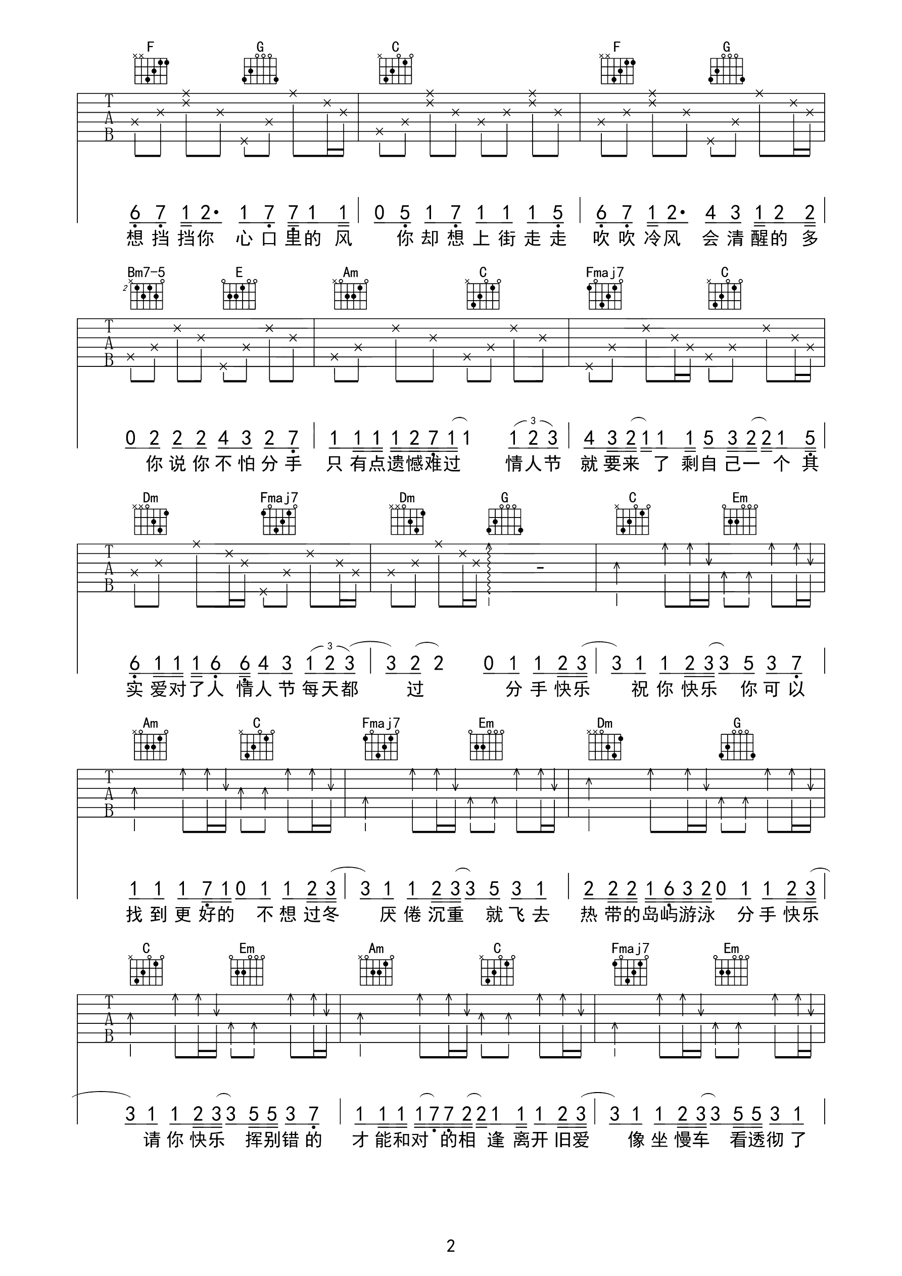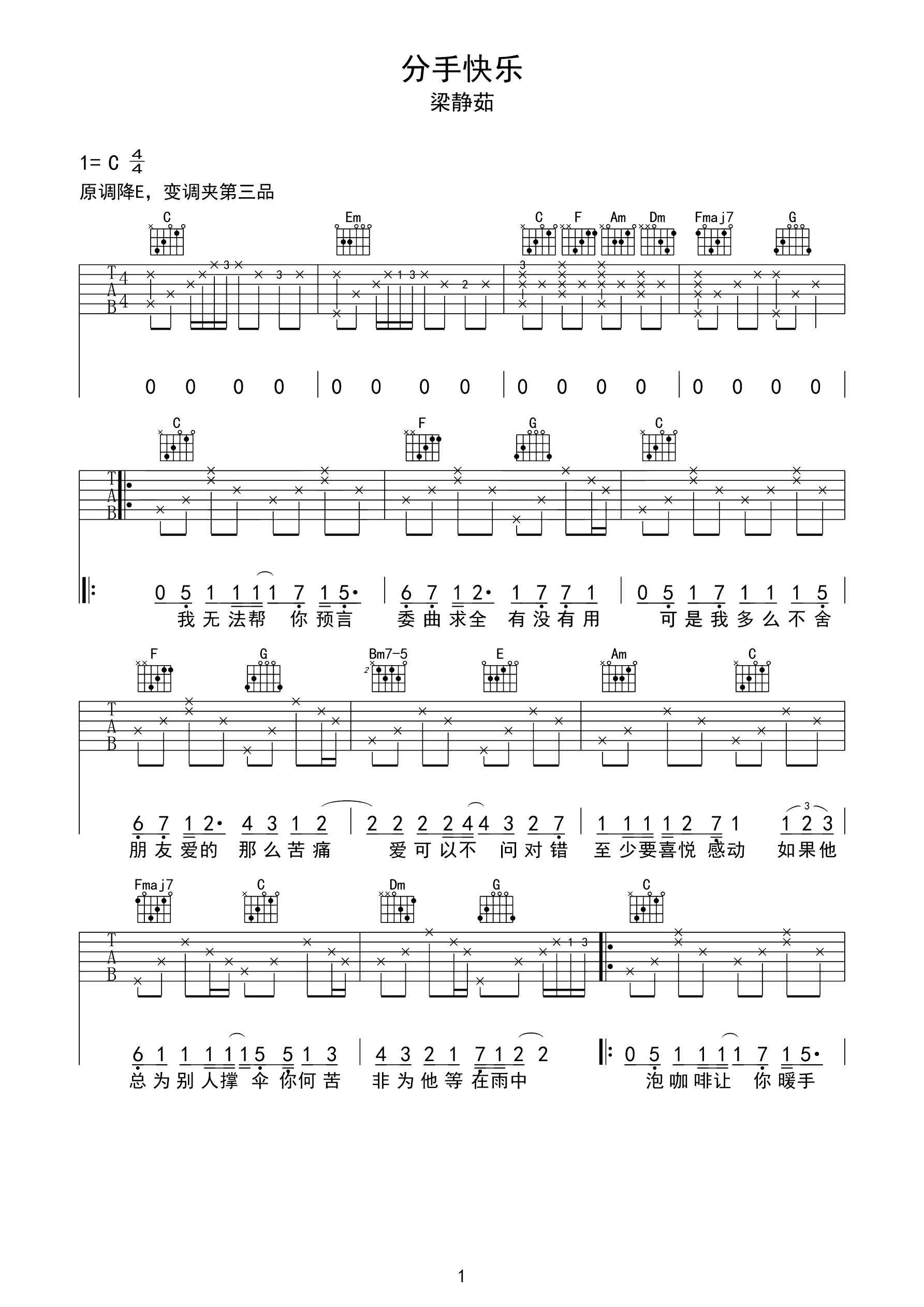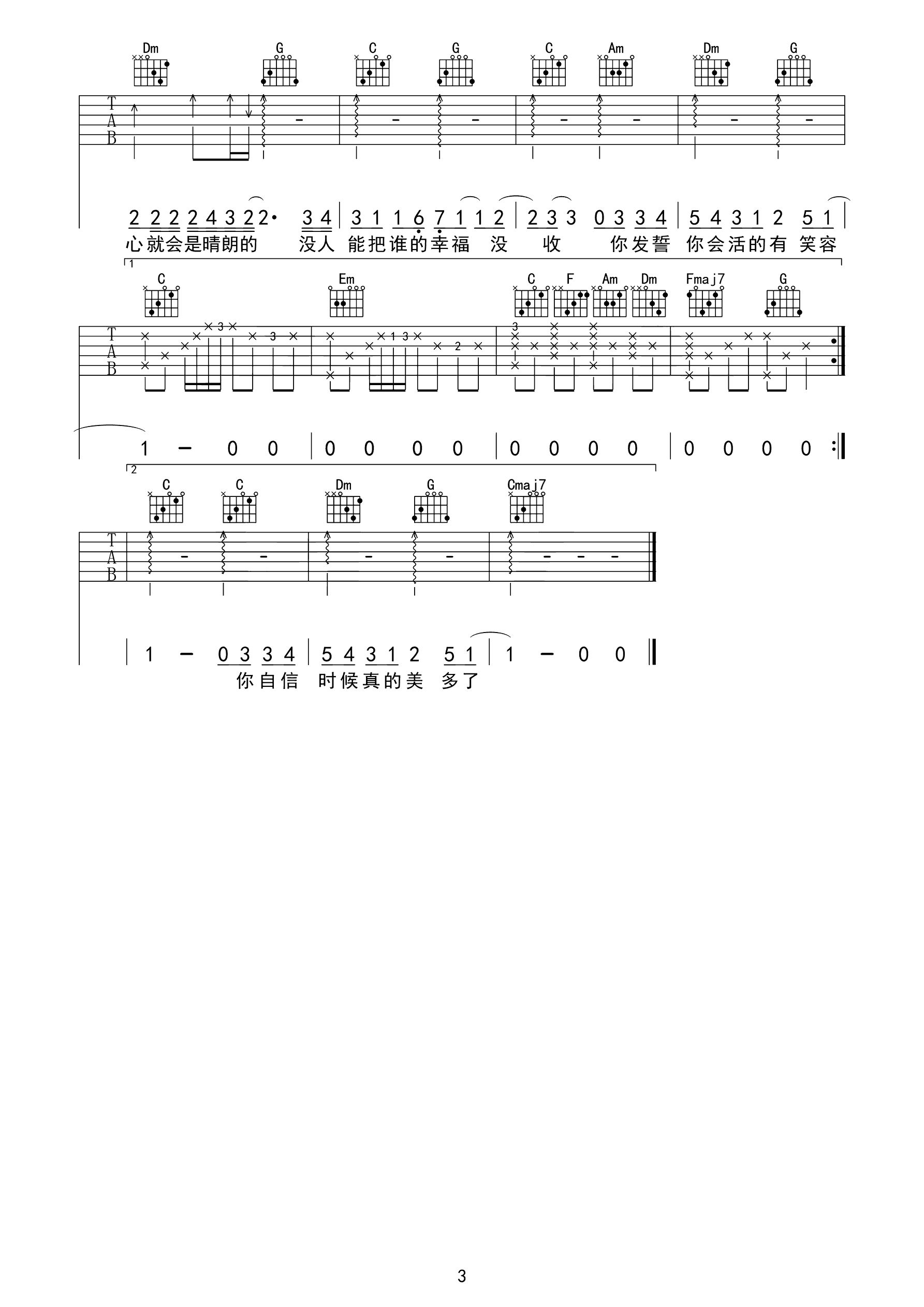小情歌吉他谱C调 苏打绿 弹唱图片谱 高
