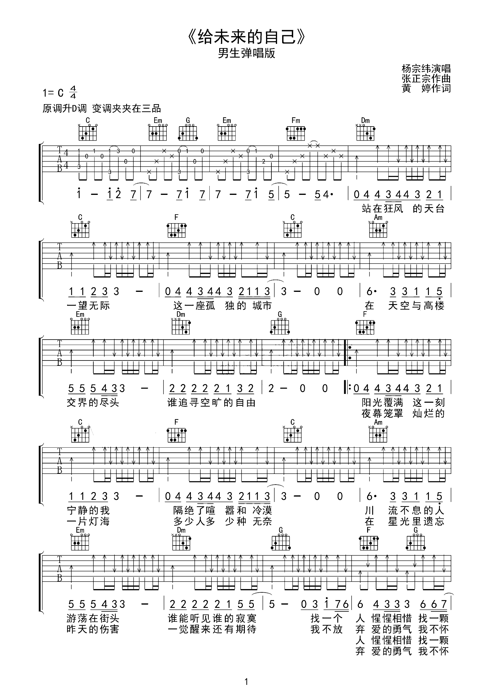 吉他谱 | 热门弹唱《给未来的自己》