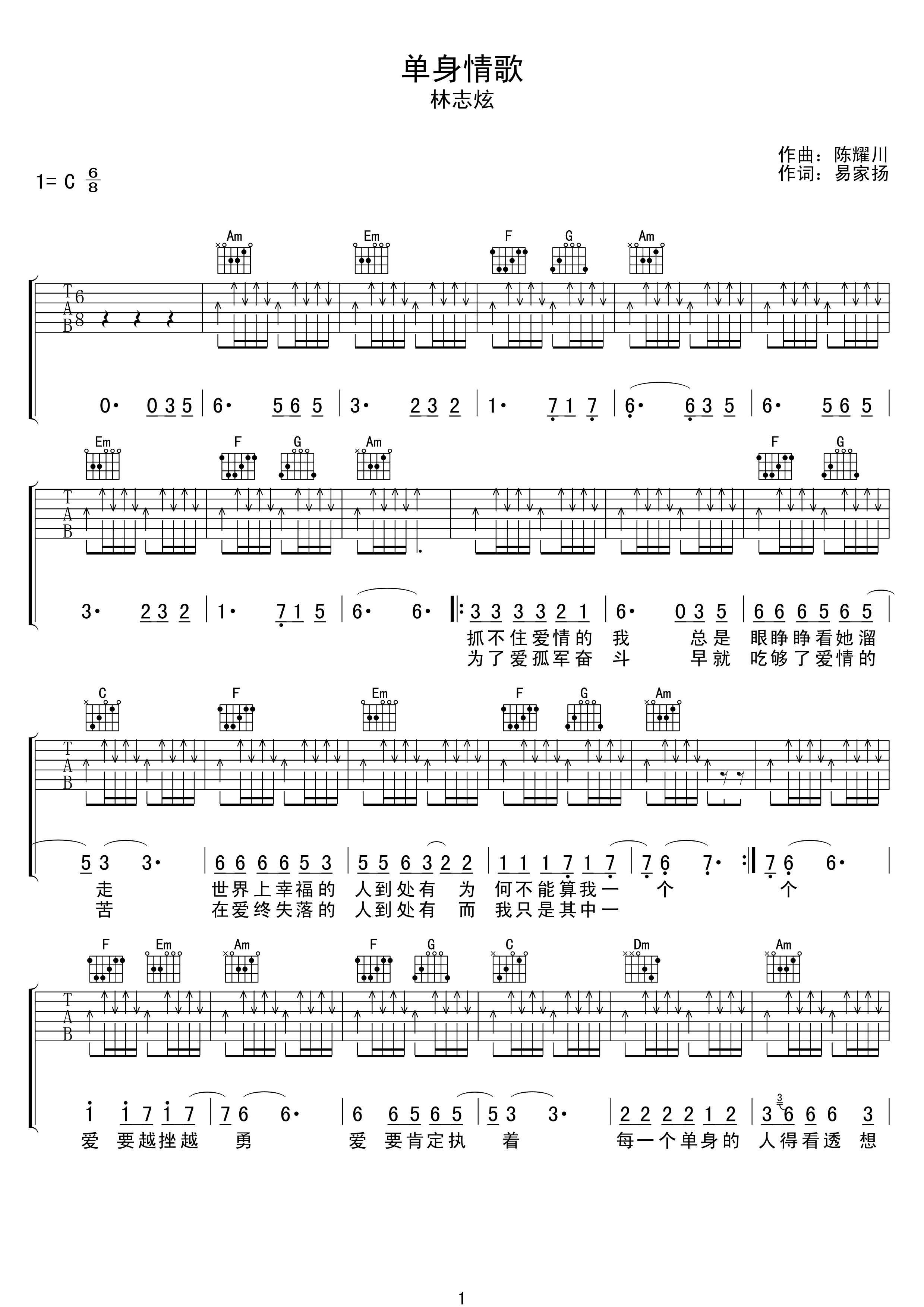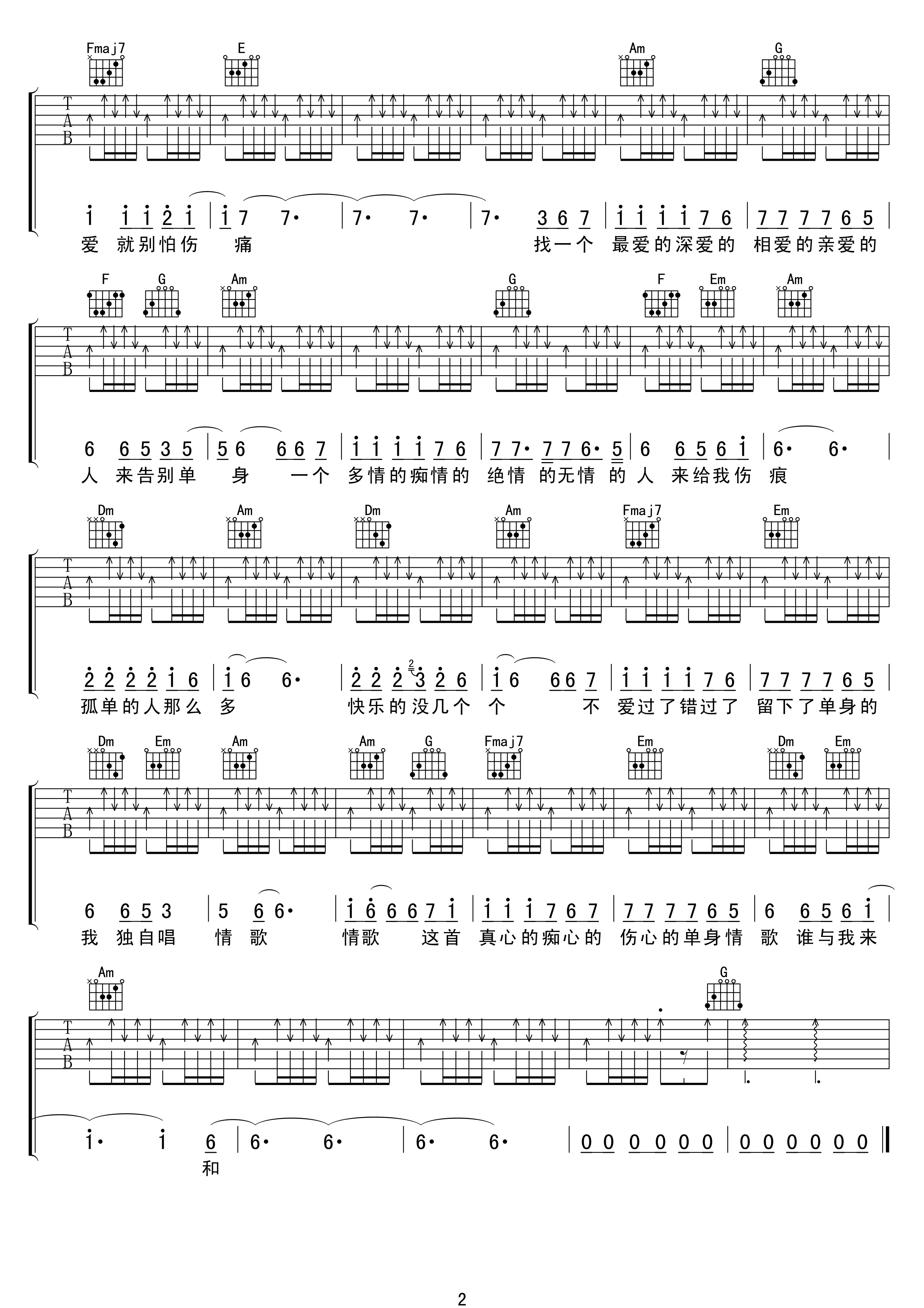 吉他谱 | 热门弹唱《单身情歌》