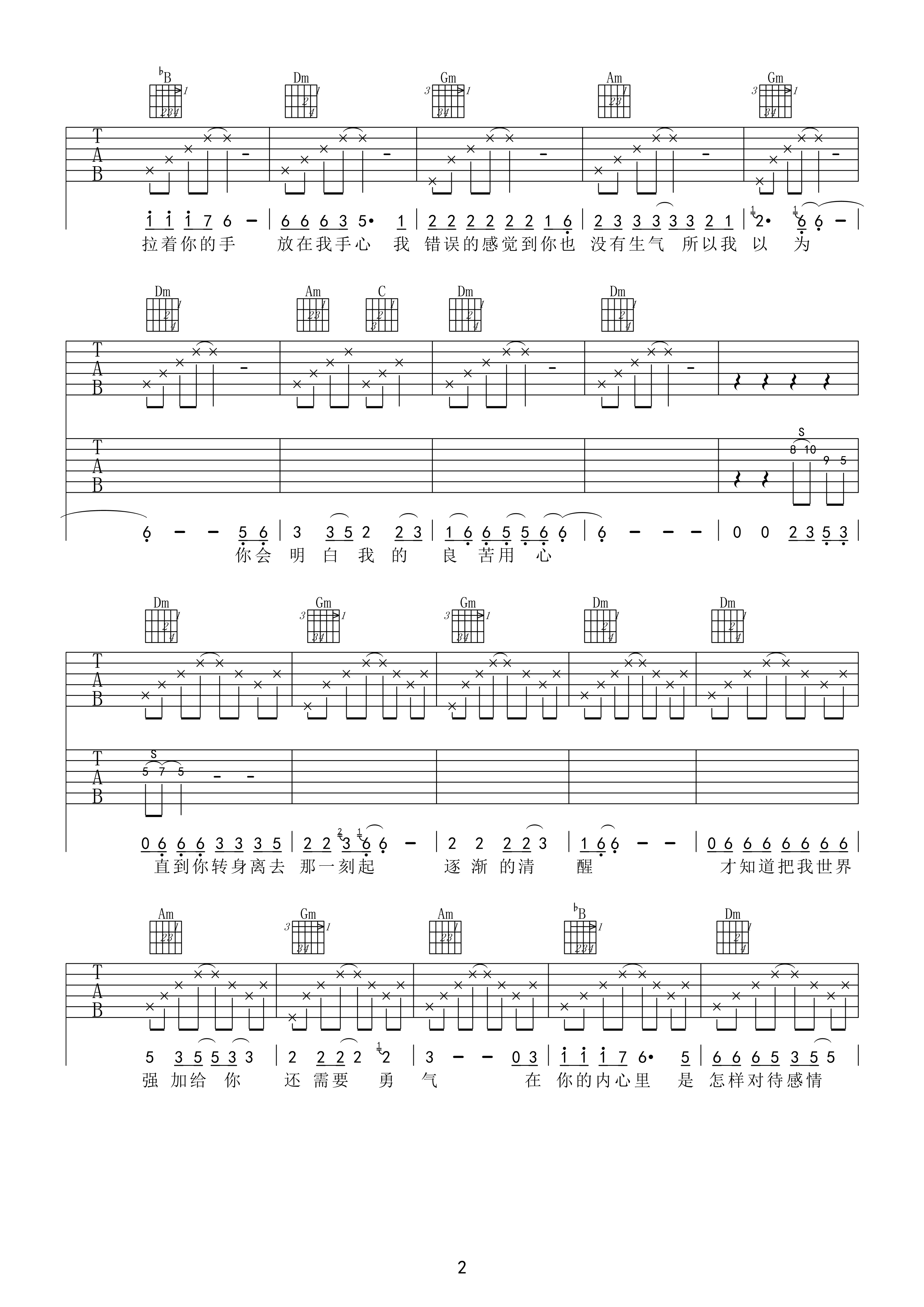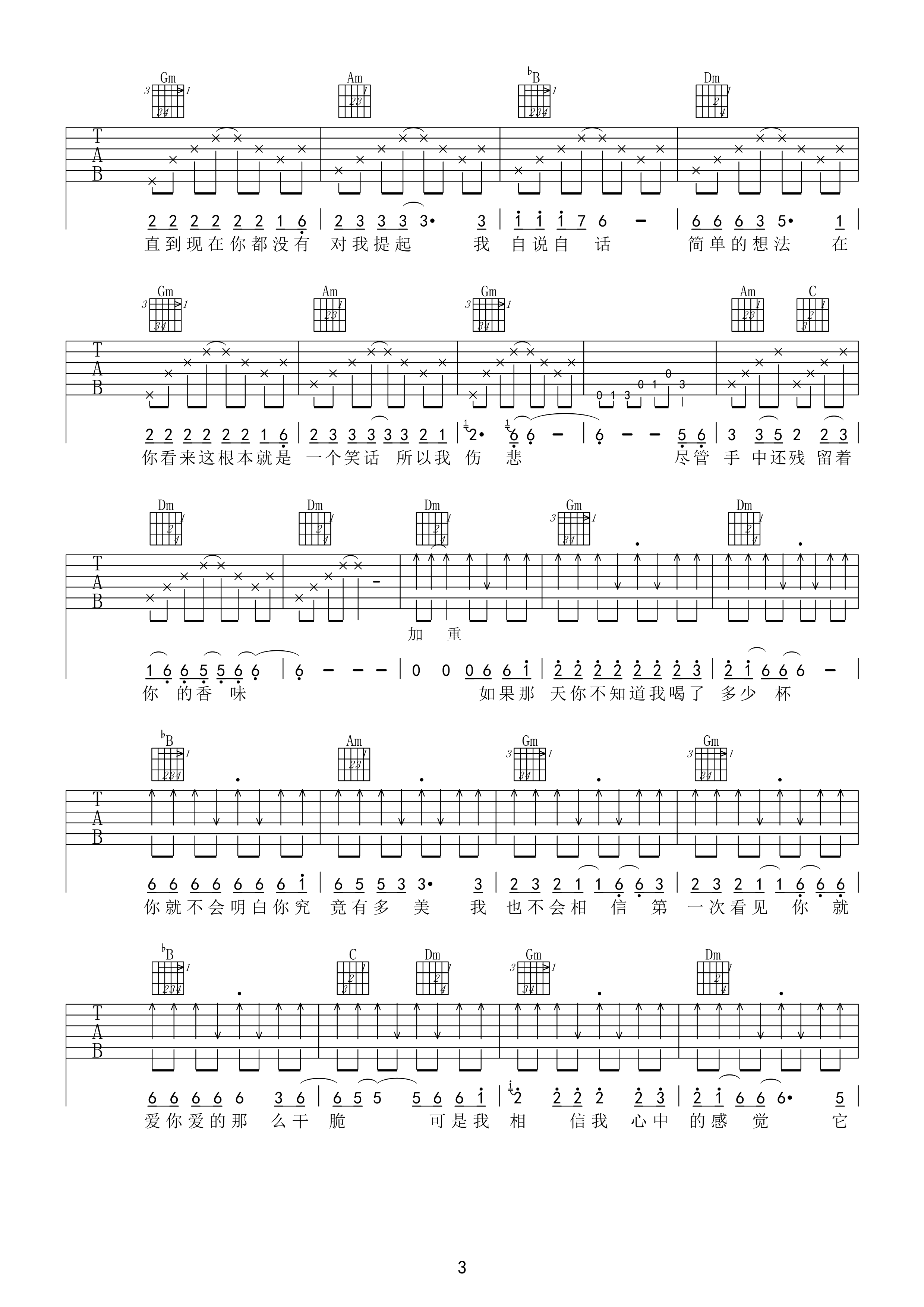慢半拍吉他谱_薛之谦_C调六线谱_弹唱演