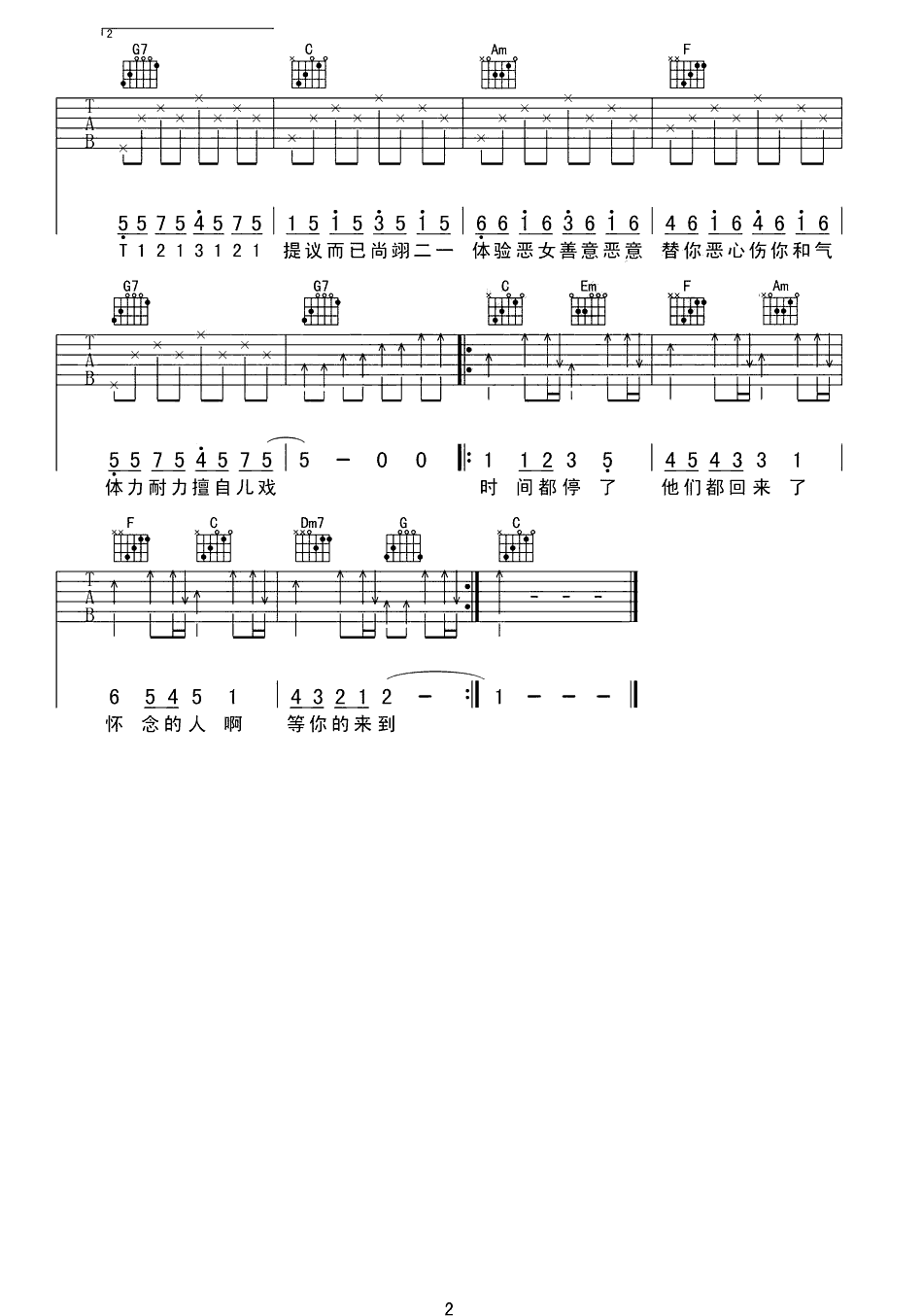 徐秉龙不二臣吉他谱 C调弹唱谱 不二臣