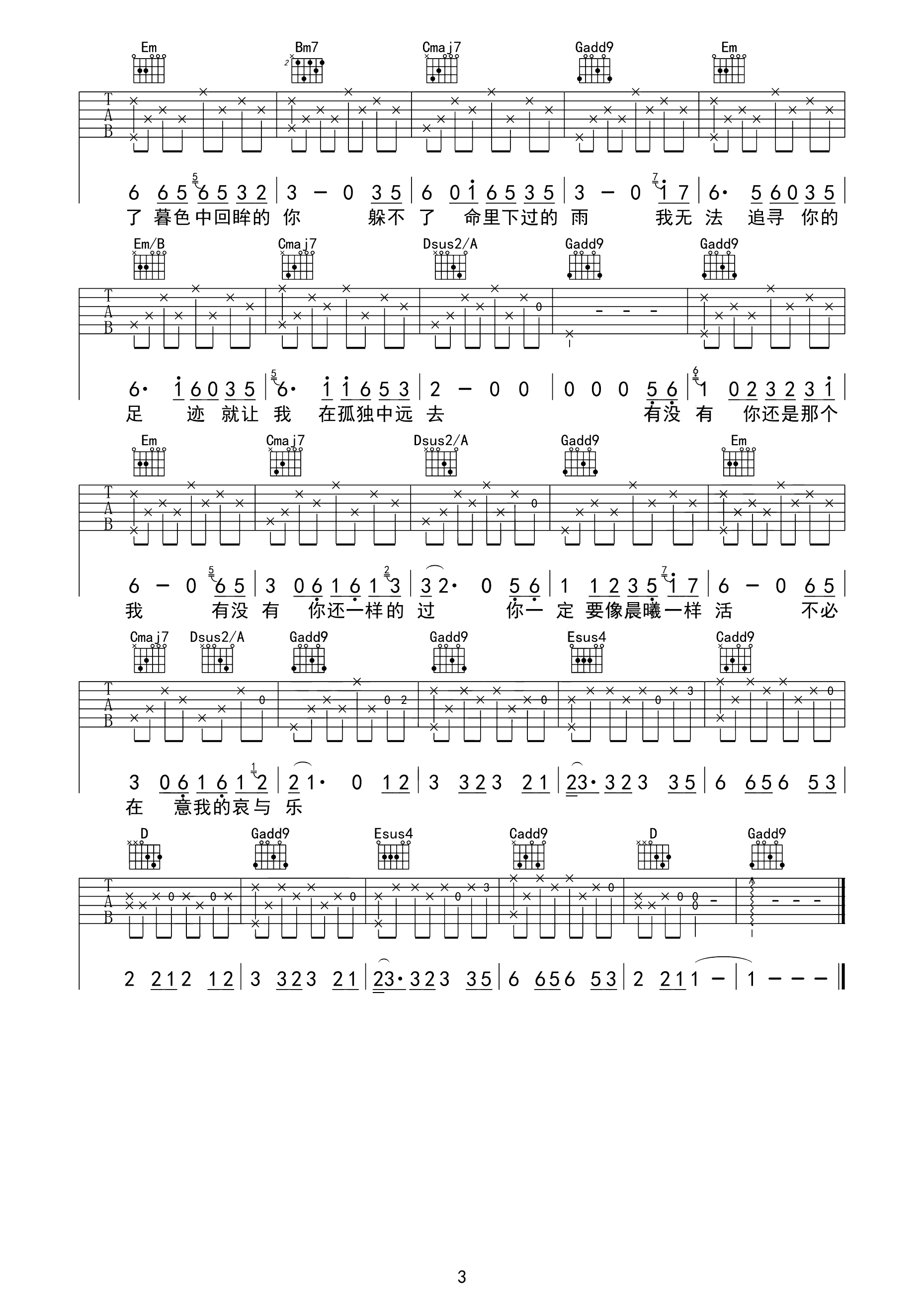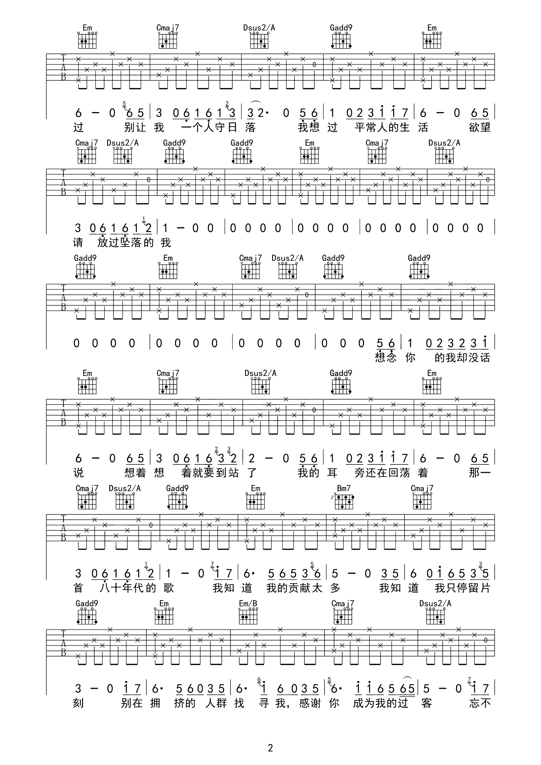 别怕我在吉他谱_隔壁老樊_C调_弹唱六线