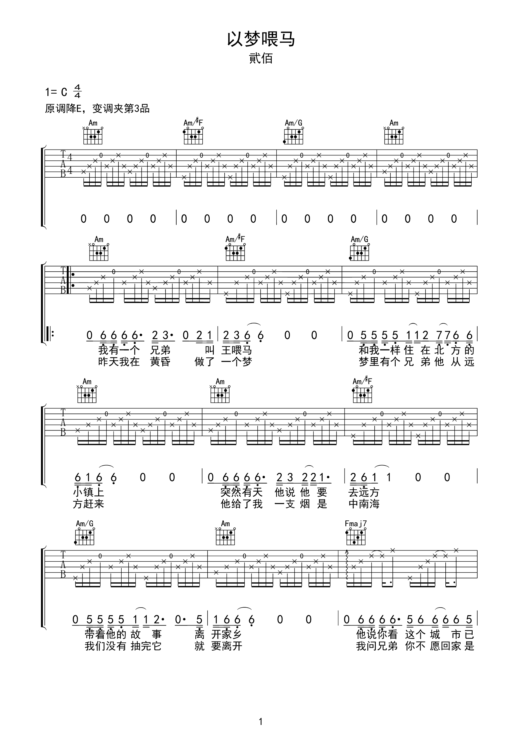 一个吉他谱_陈壹千_G调_弹唱六线谱_高