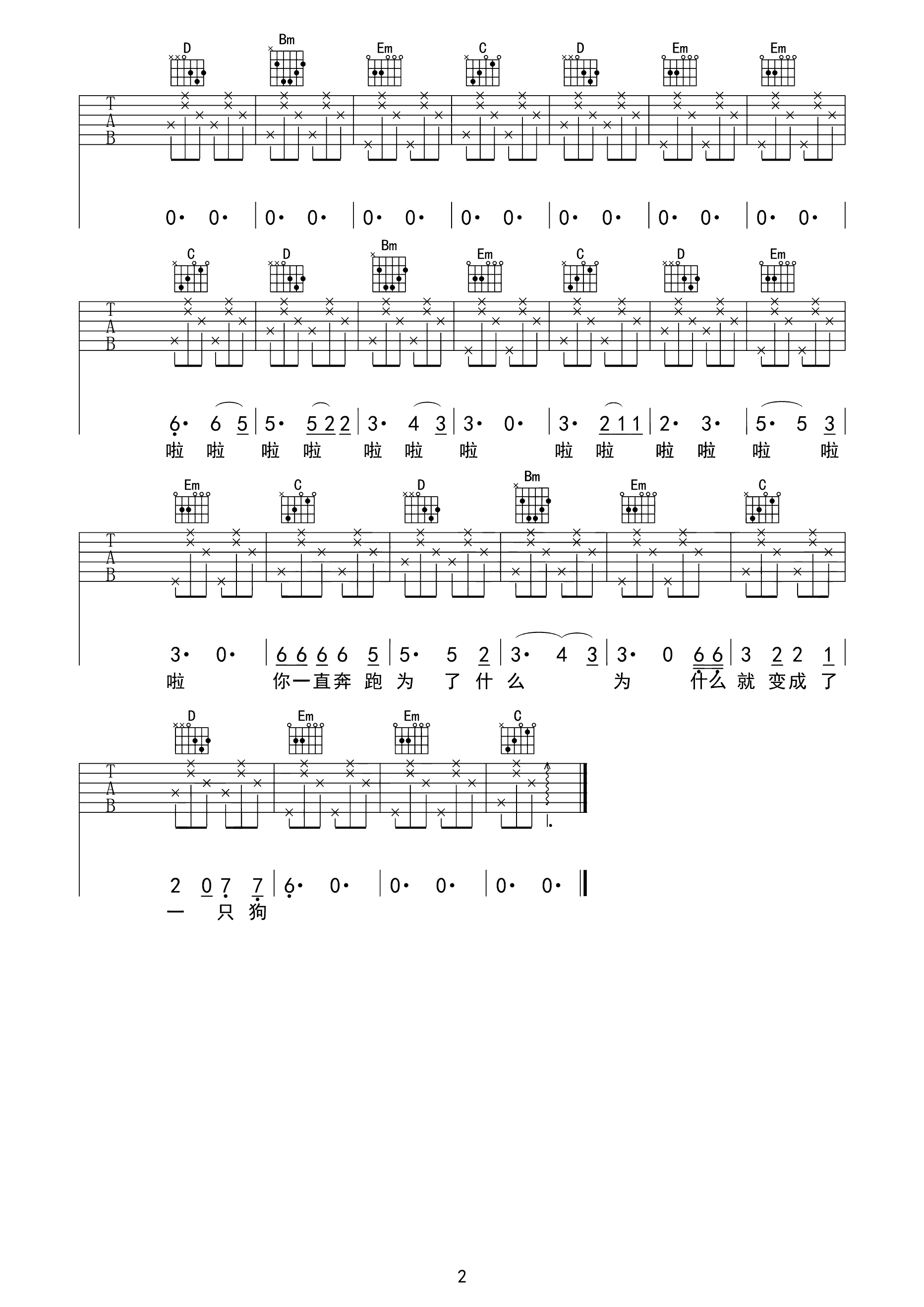 吉他谱 | 热门弹唱《一只狗》
