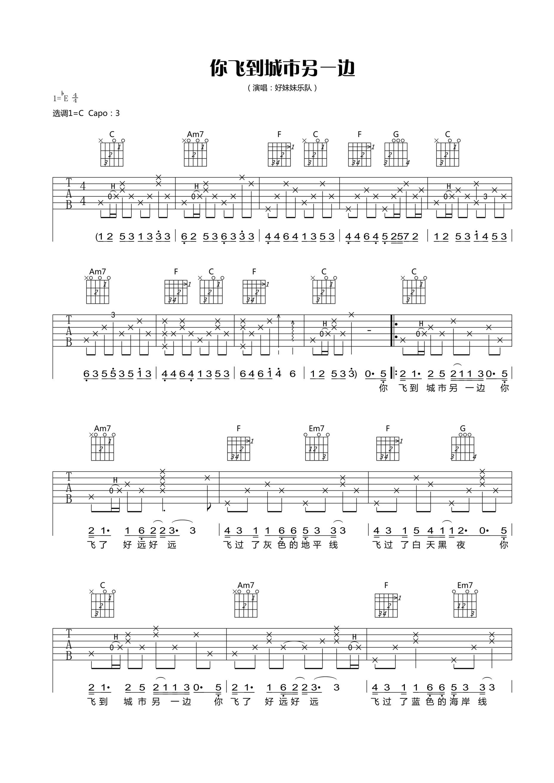 吉他谱 | 热门弹唱《你飞到城市另一边》