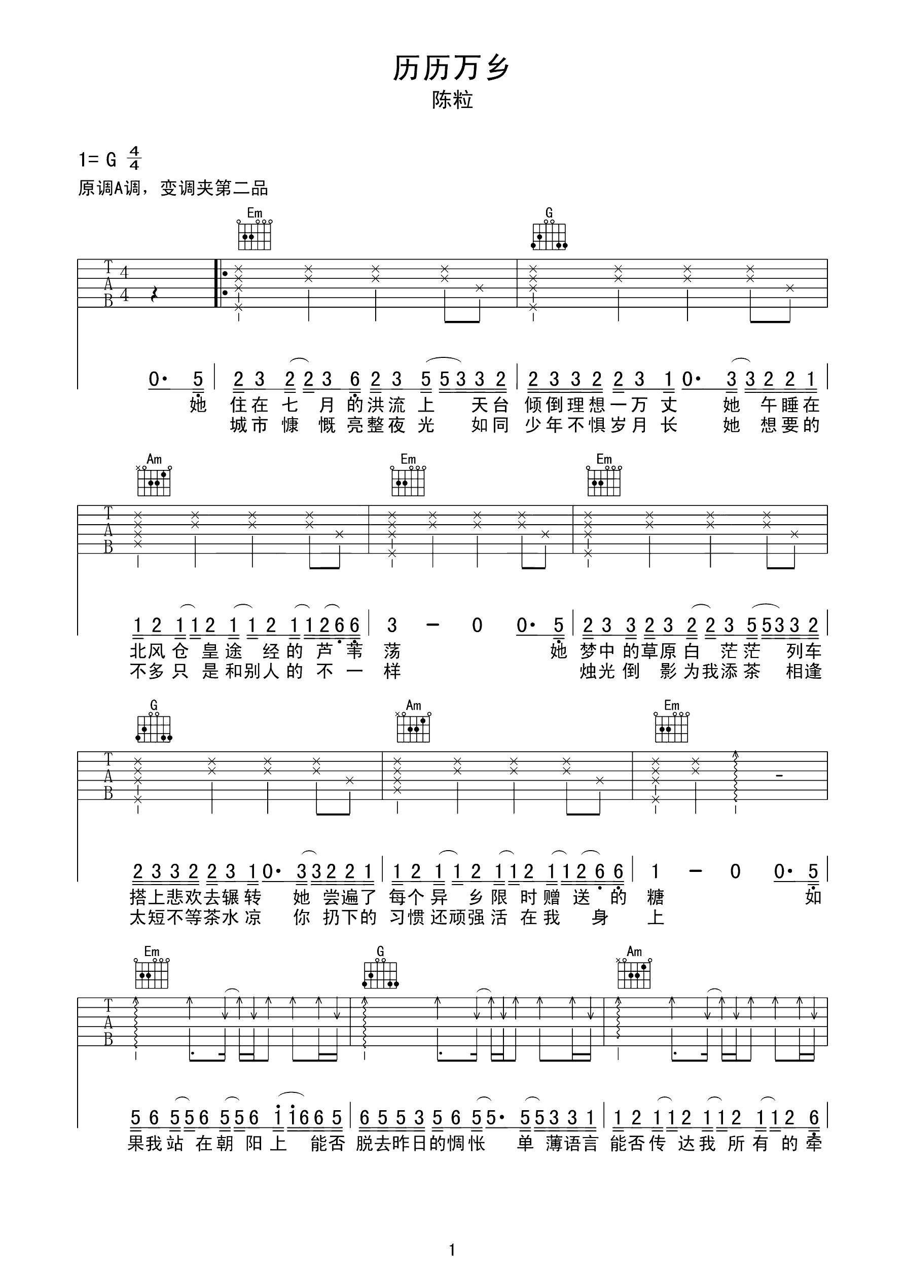 吉他谱 | 热门弹唱《历历万乡》