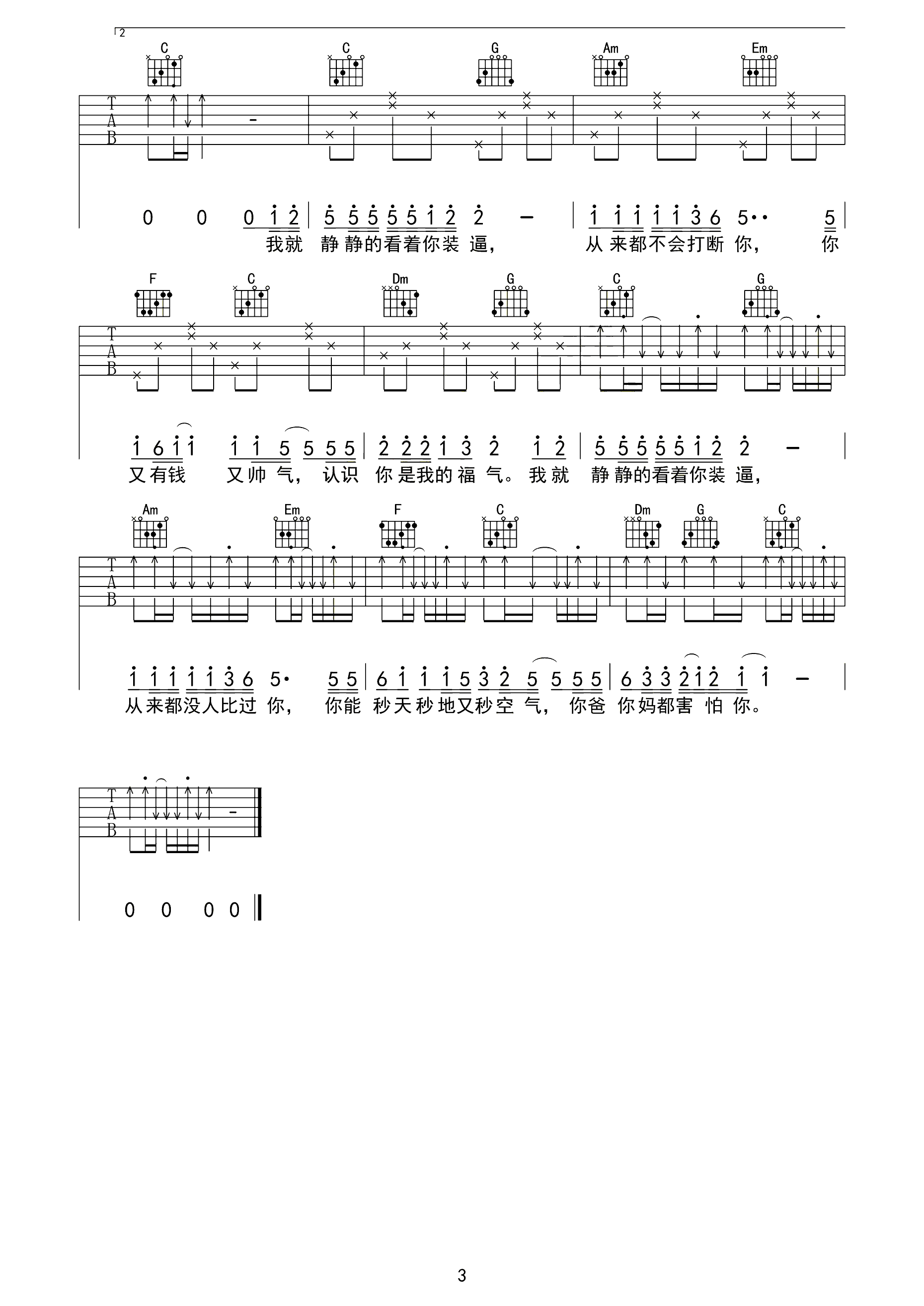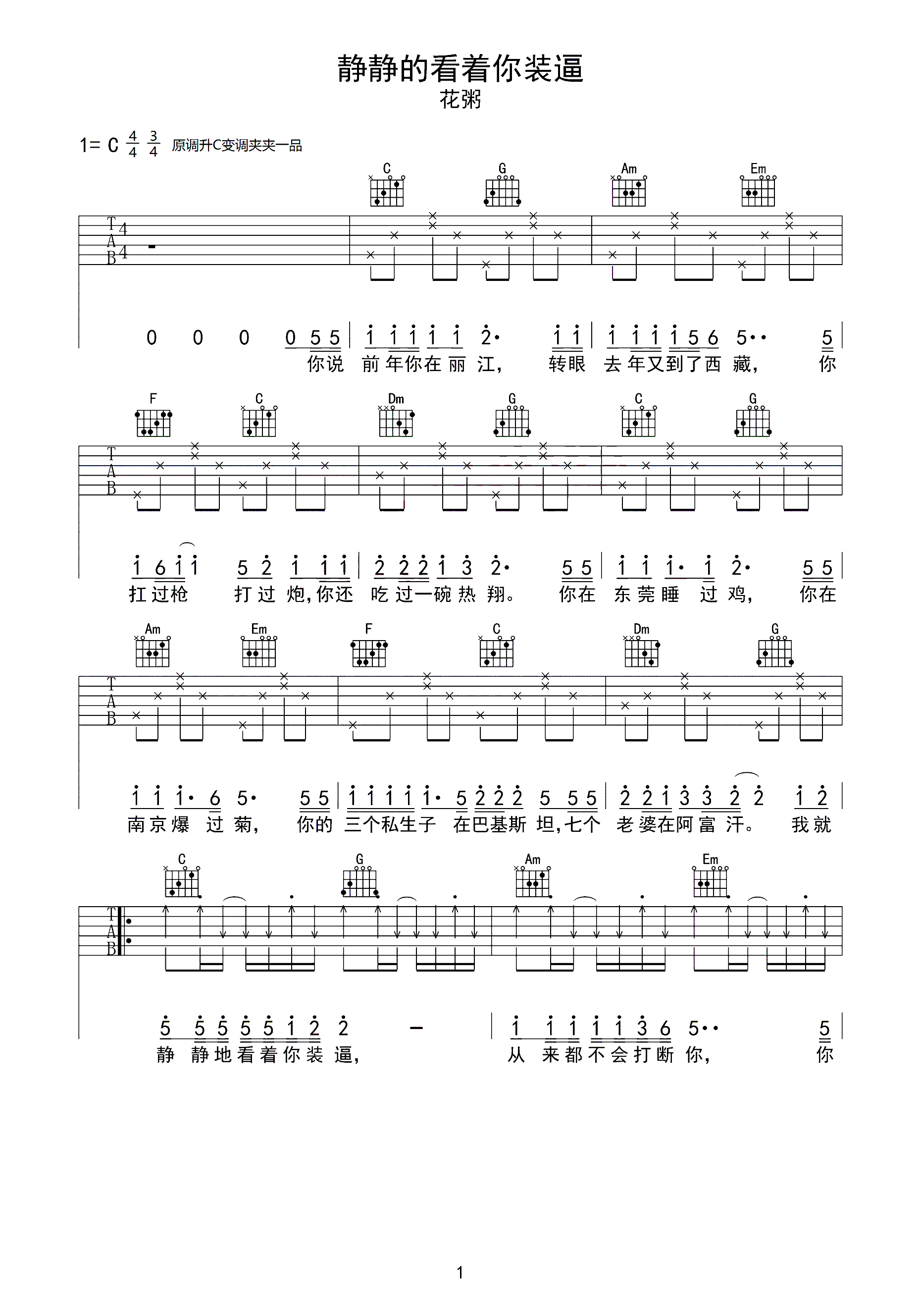 吉他谱 | 热门弹唱《静静的看着你装逼》