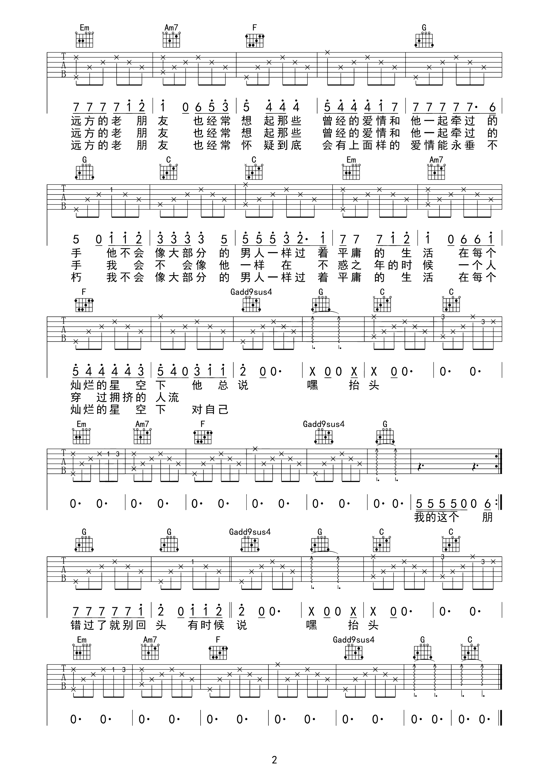 表态吉他谱_梁博_C调弹唱谱_高清图片谱