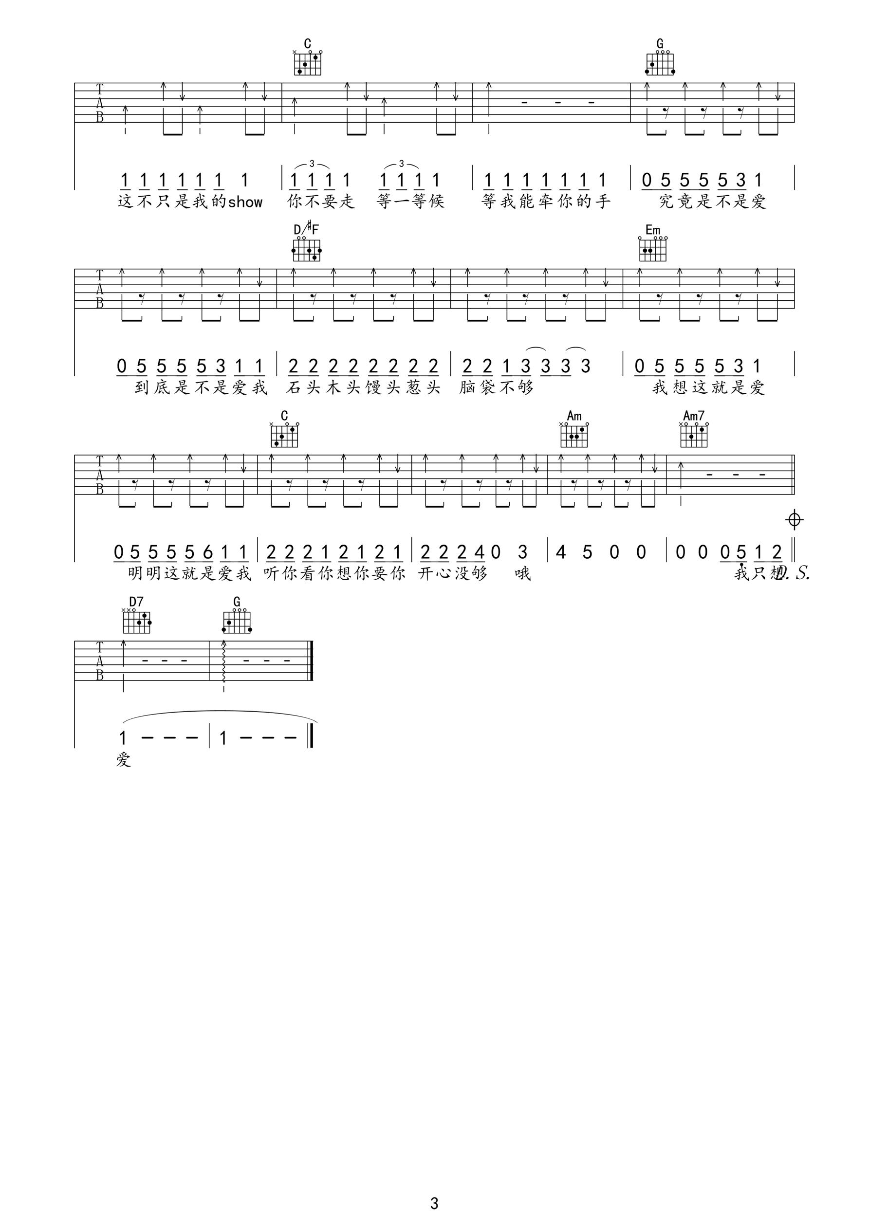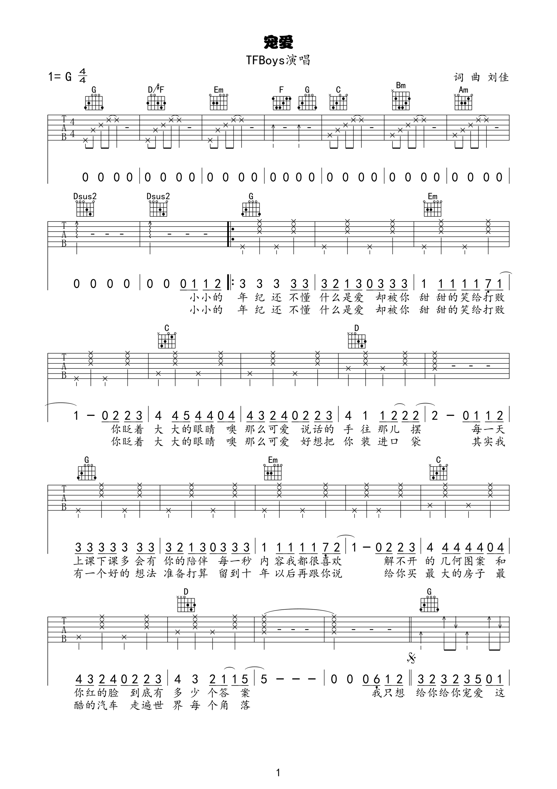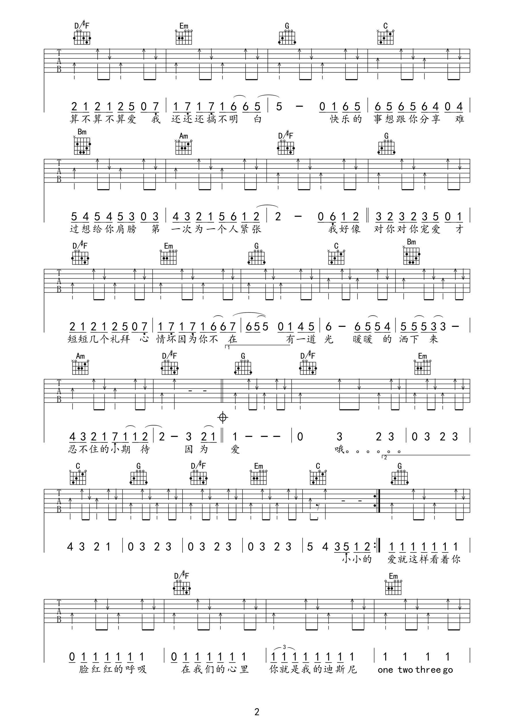 我爱你中国吉他谱_C调六线谱_爱国歌曲_