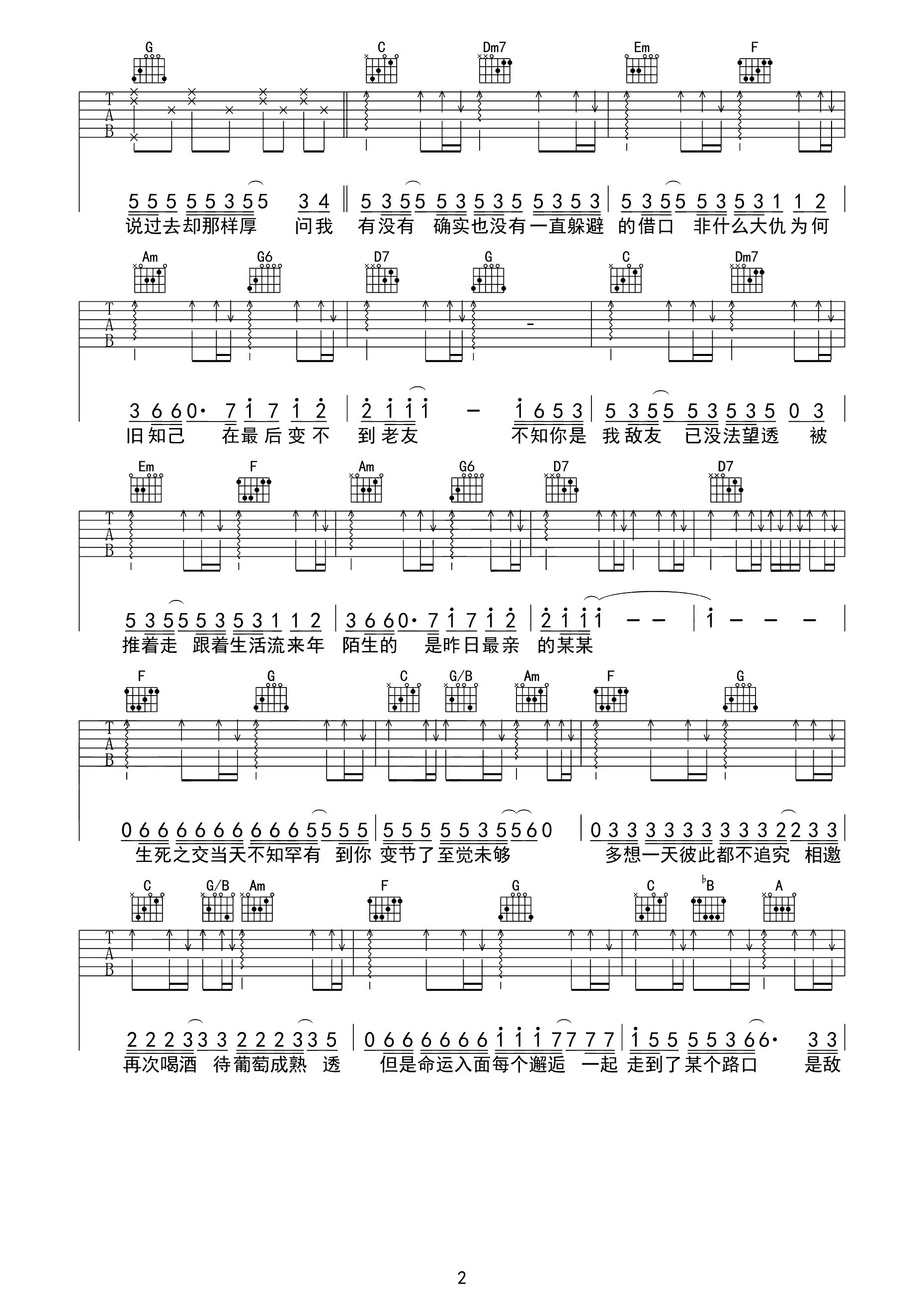 船子吉他谱 陈鸿宇 C调弹唱谱_高清图片
