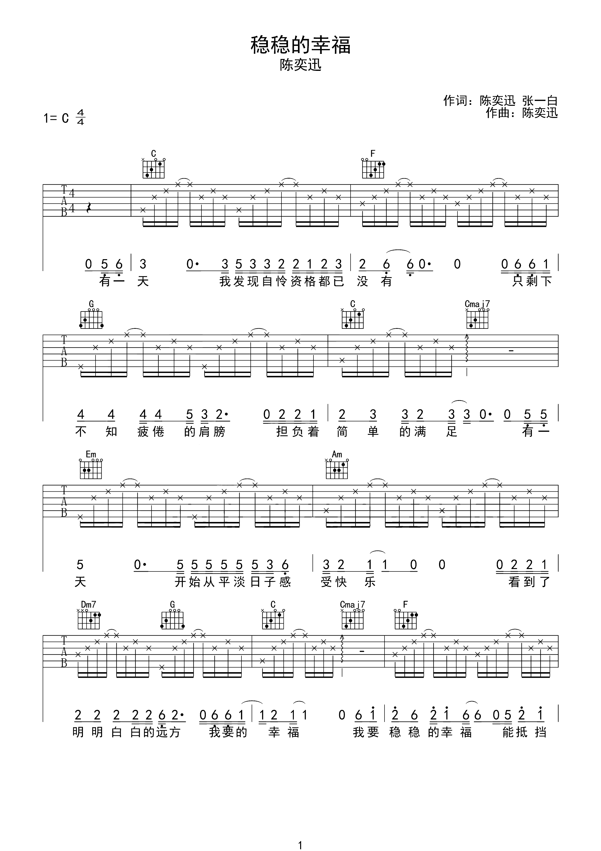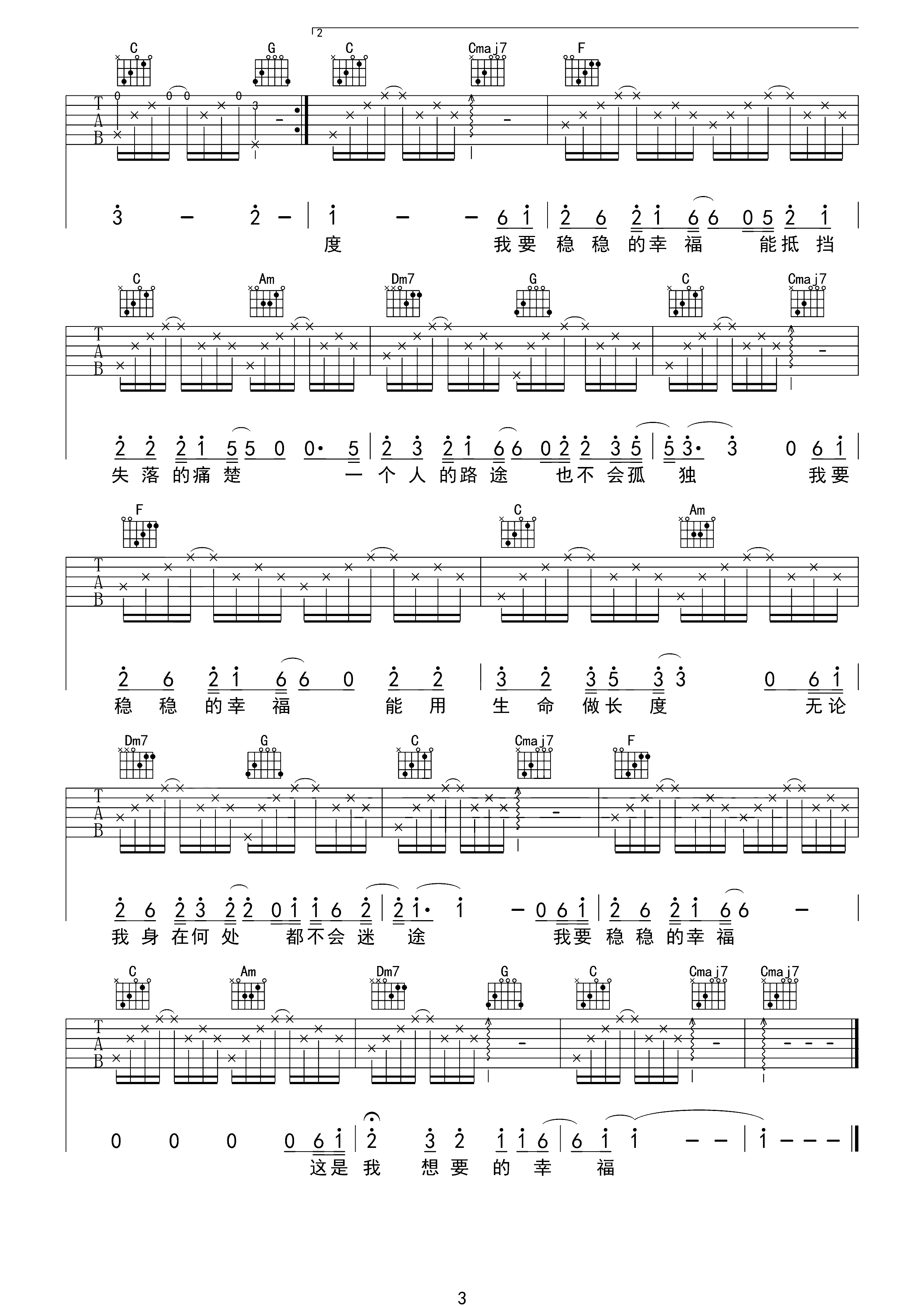 吉他谱 | 热门弹唱《稳稳的幸福》