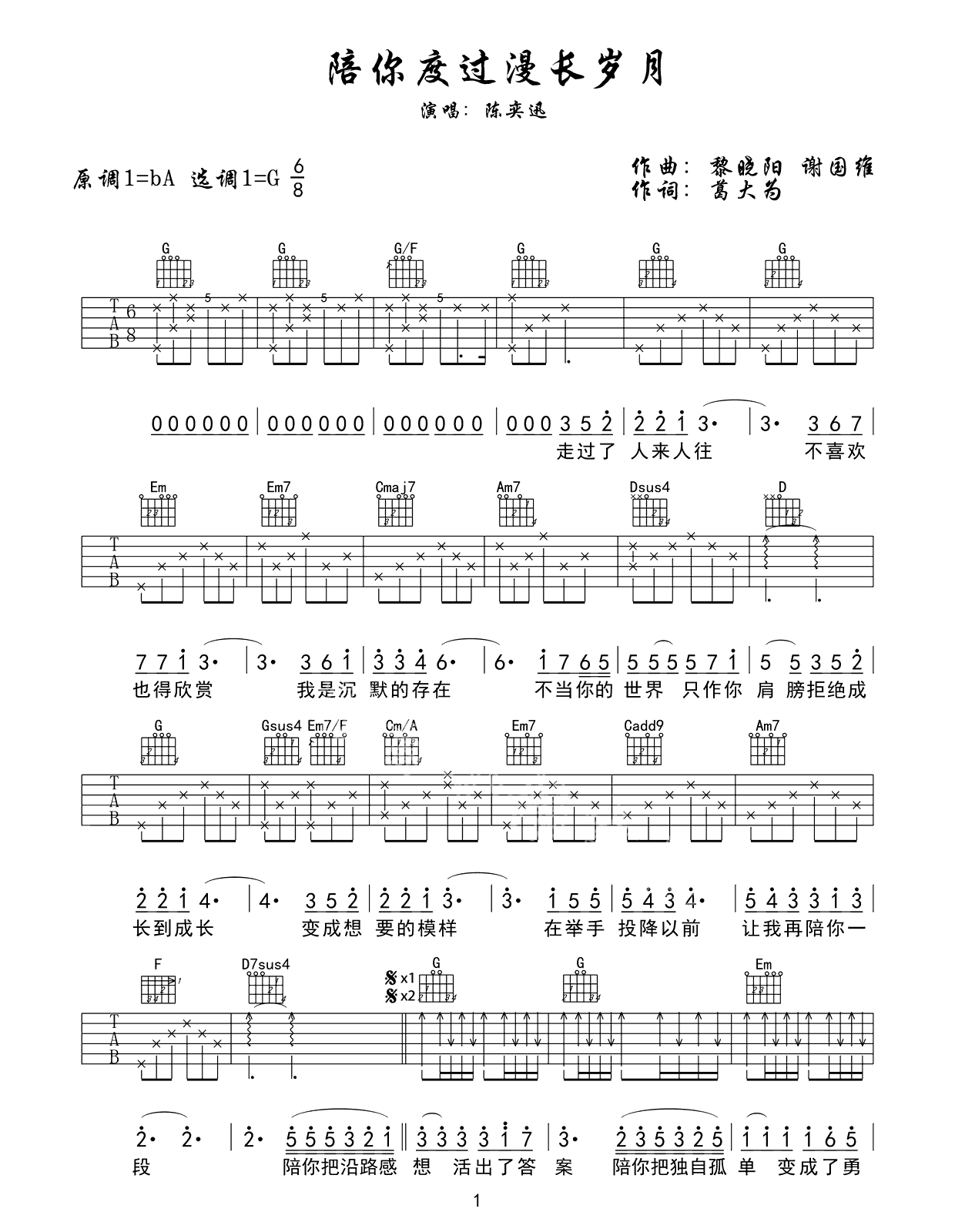 吉他谱 | 热门弹唱《陪你度过漫长岁月》
