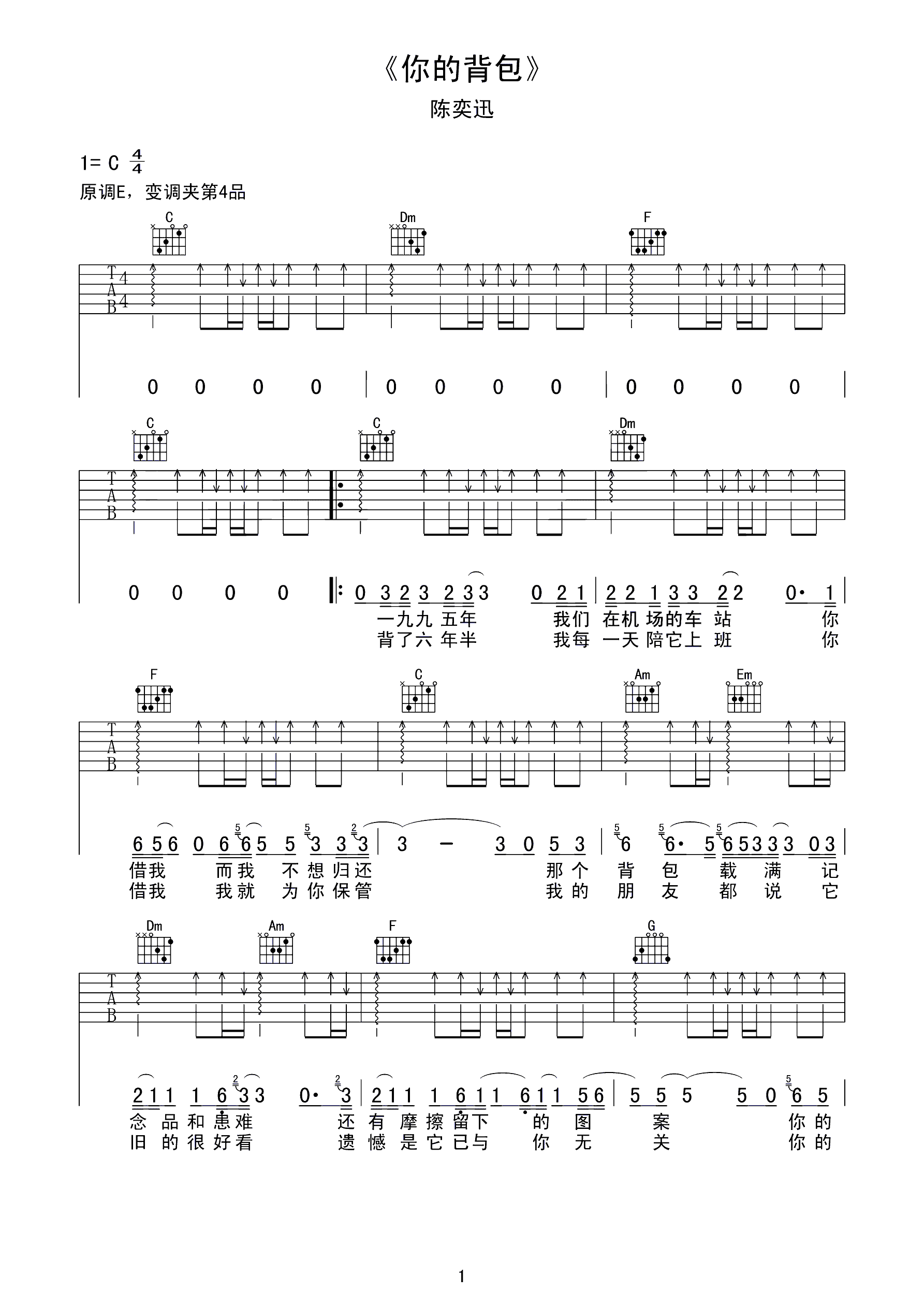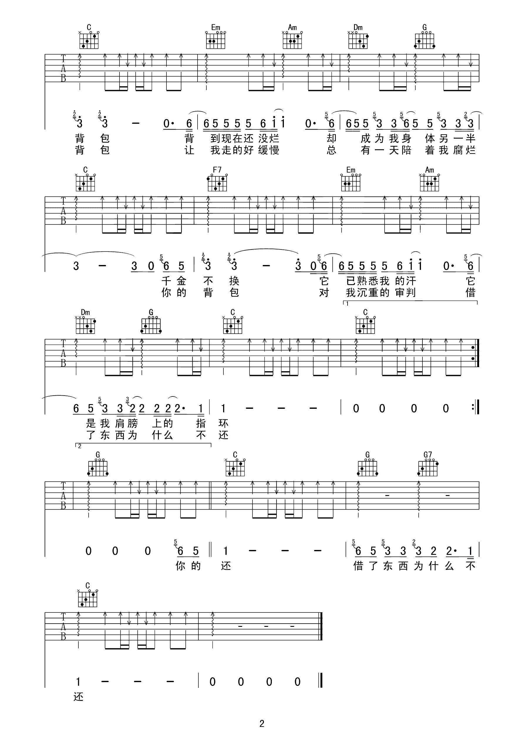 男孩吉他谱_梁博_C调指法_男孩六线谱