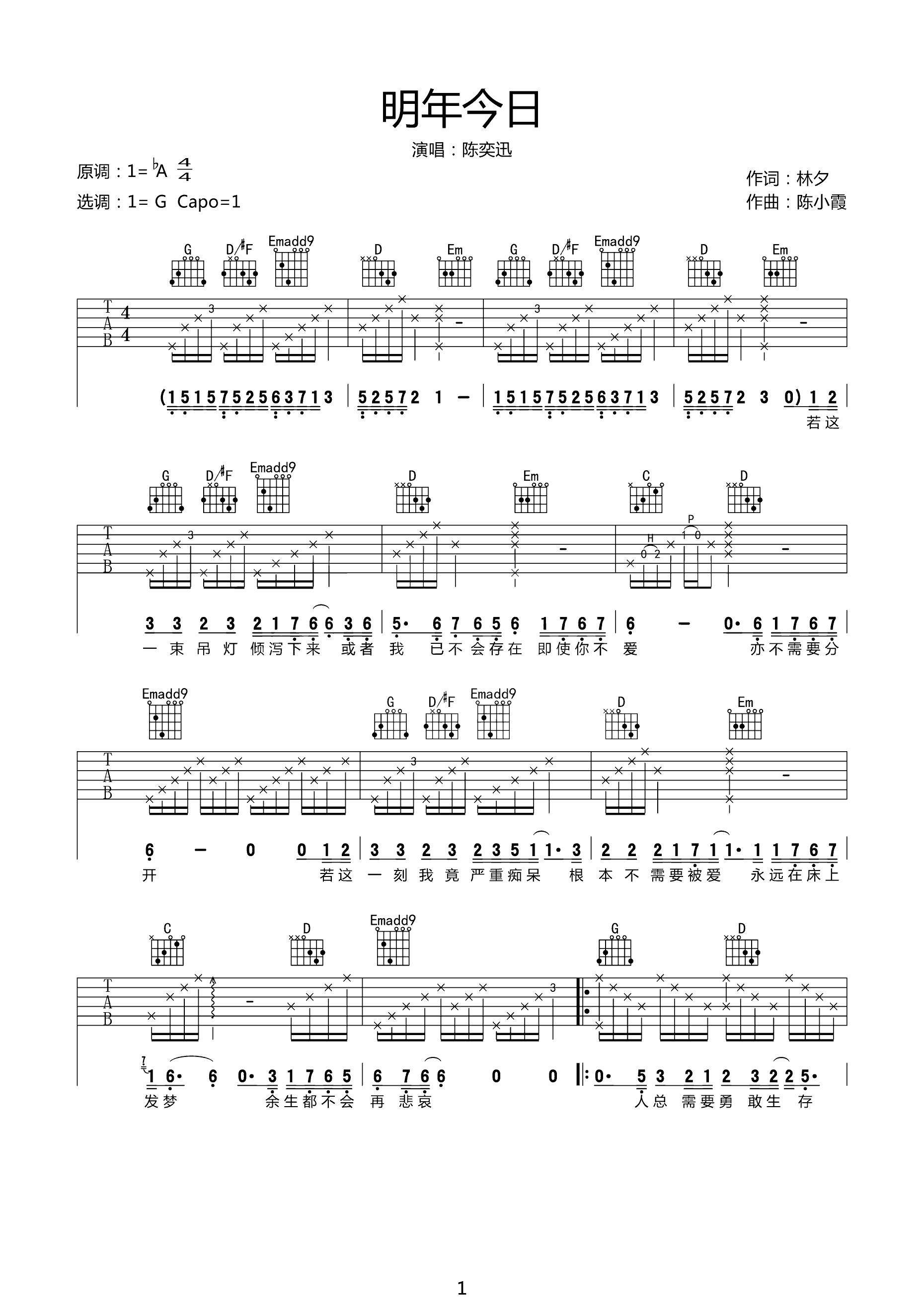 吉他谱 | 热门弹唱《明年今日》