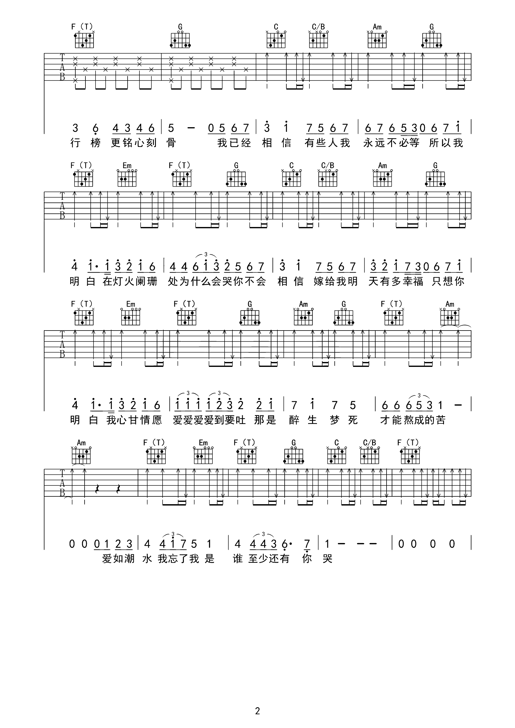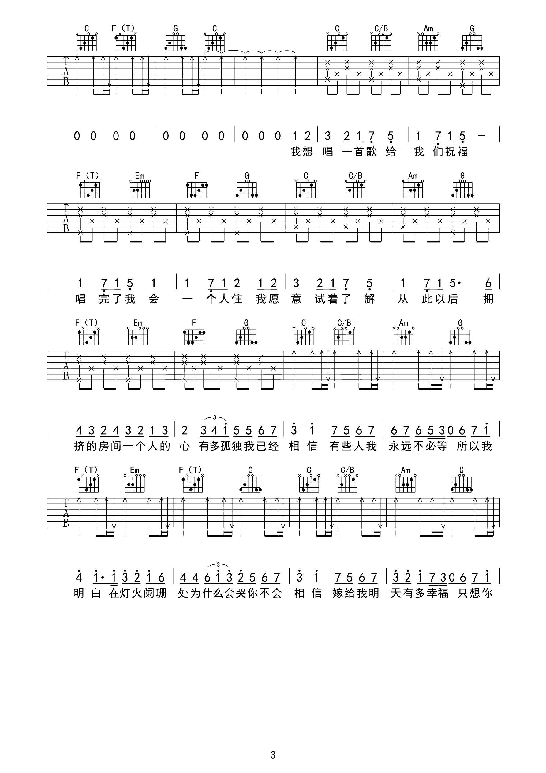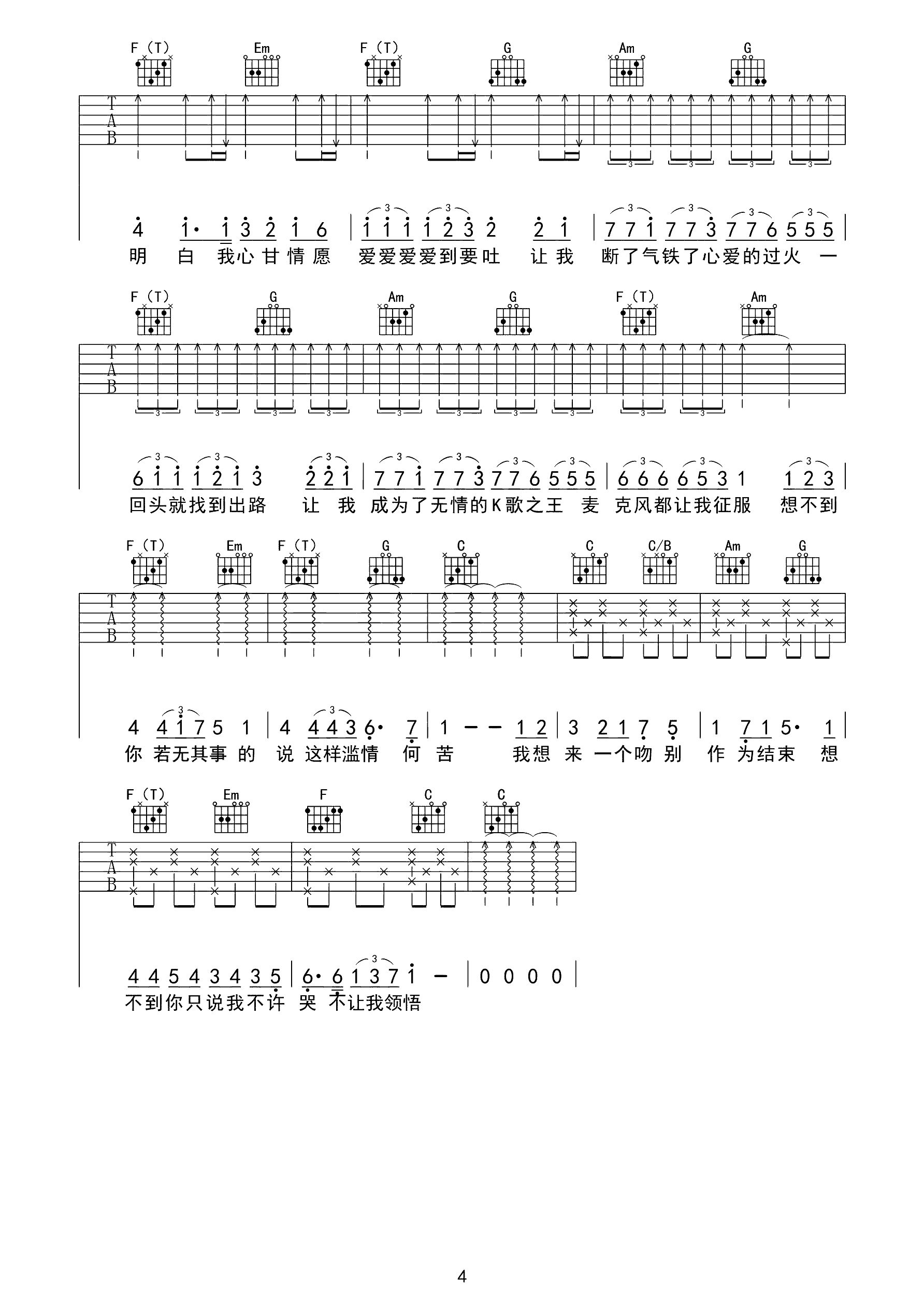 田馥甄《爱了很久的朋友》吉他谱 C调女