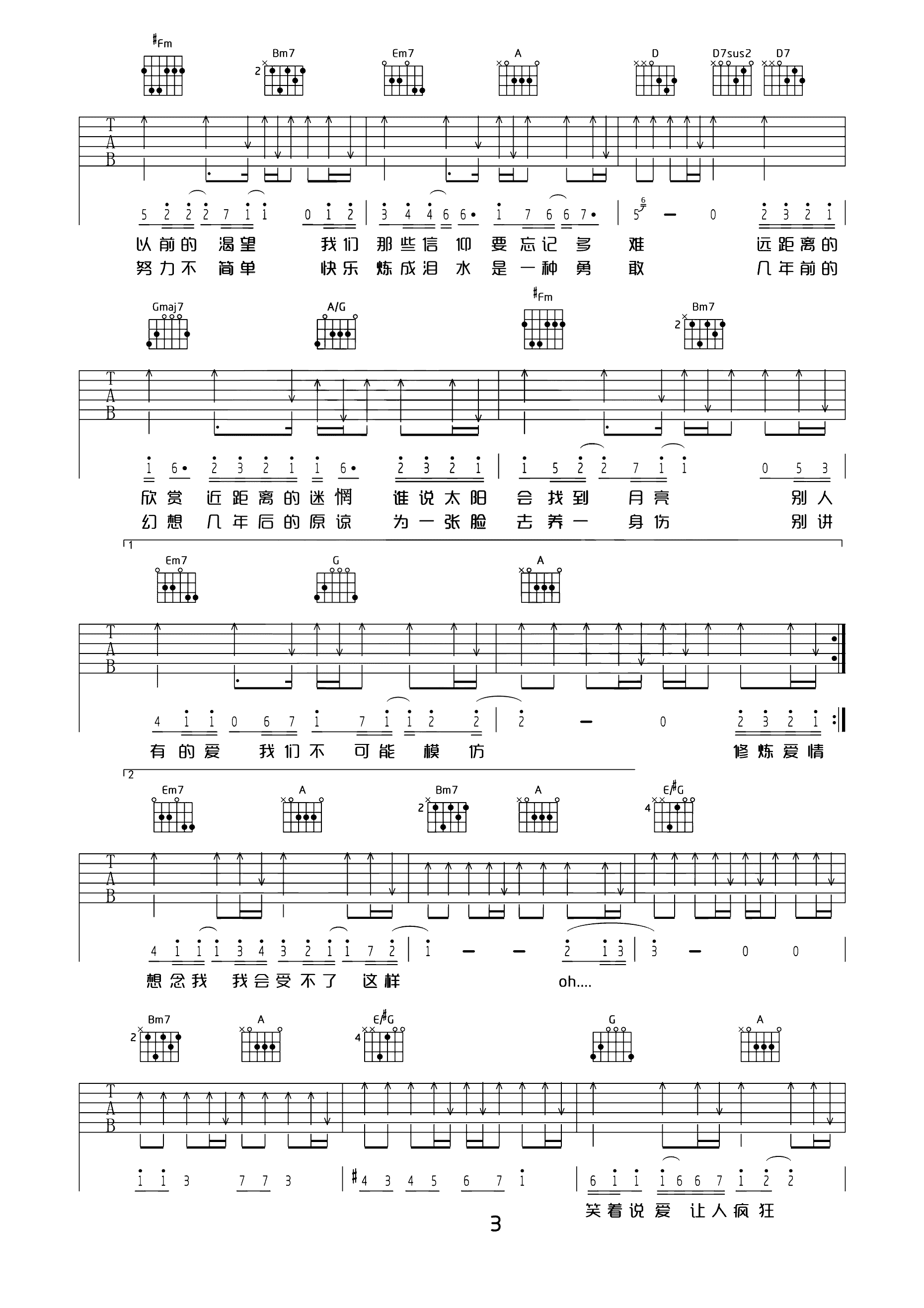 蔡健雅《停格》吉他谱_图片谱_电影《澳