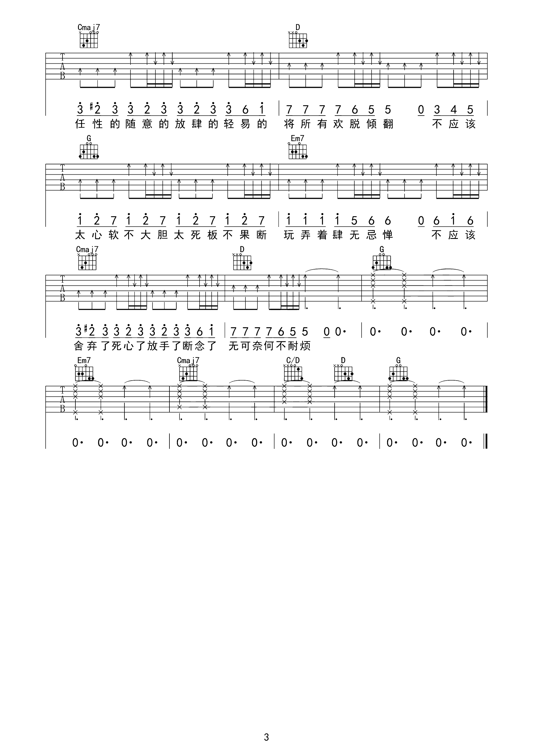 嘻唰唰吉他谱