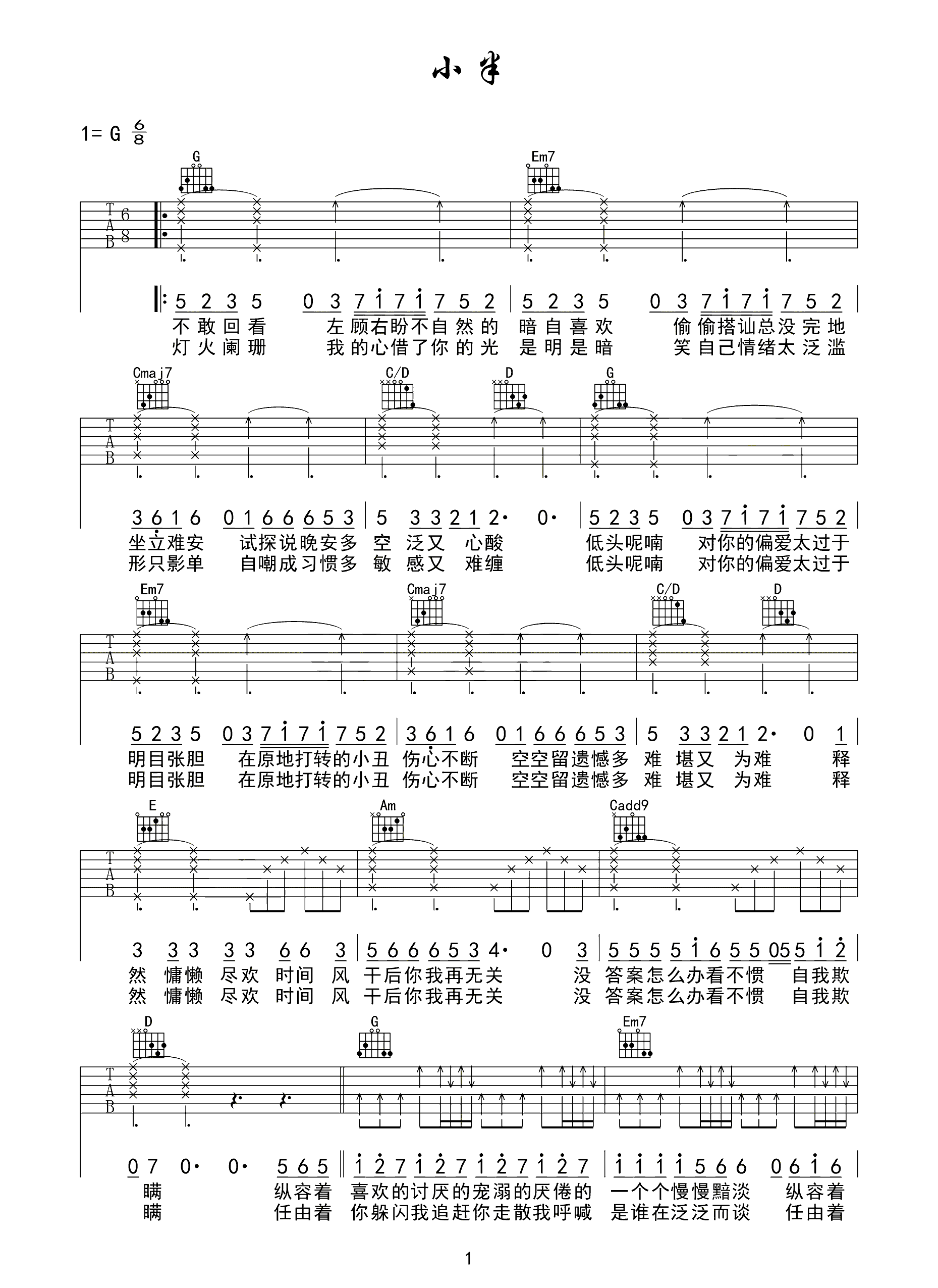 吉他谱 | 热门弹唱《小半》