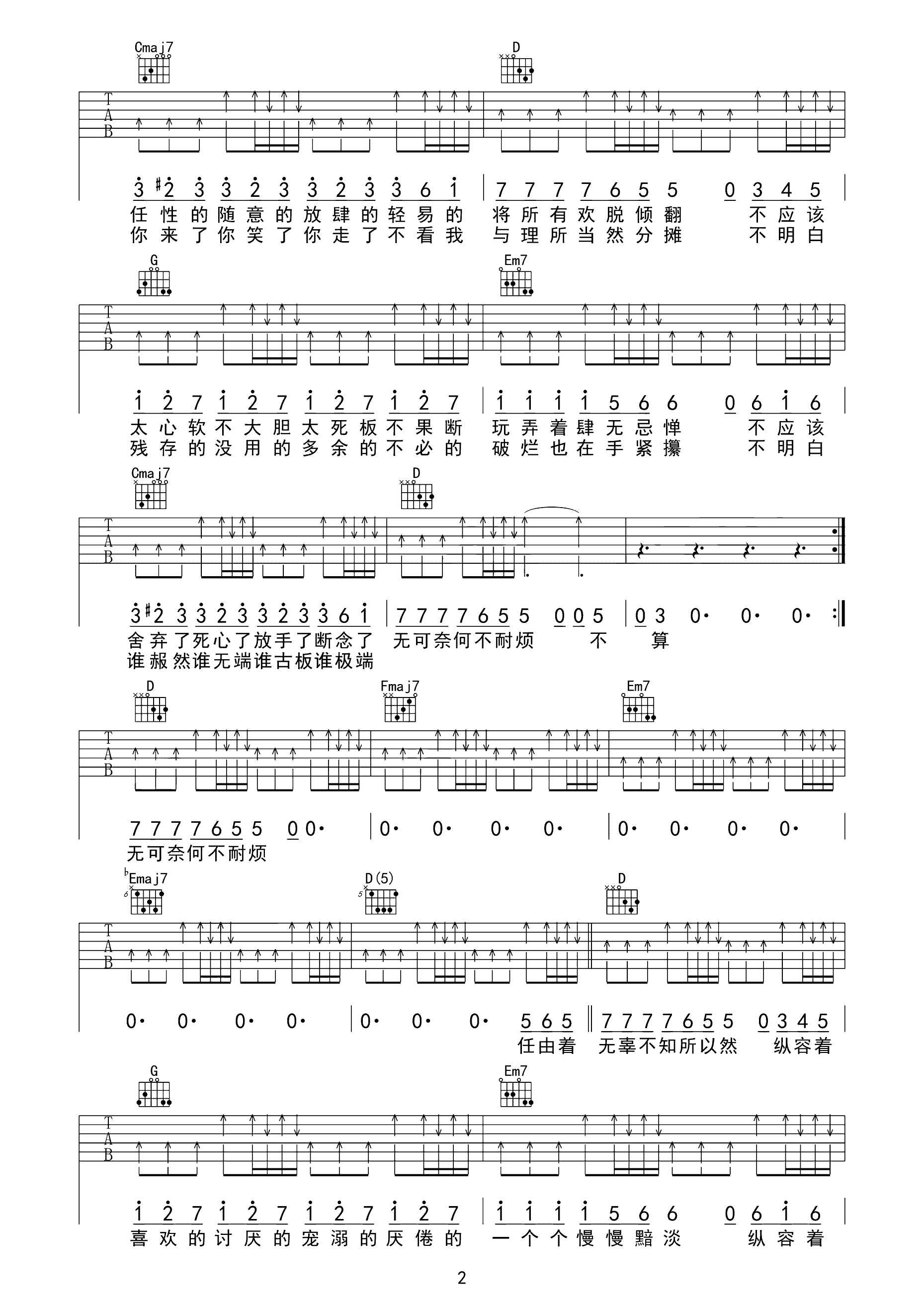 一家一减你 清晰版吉他谱