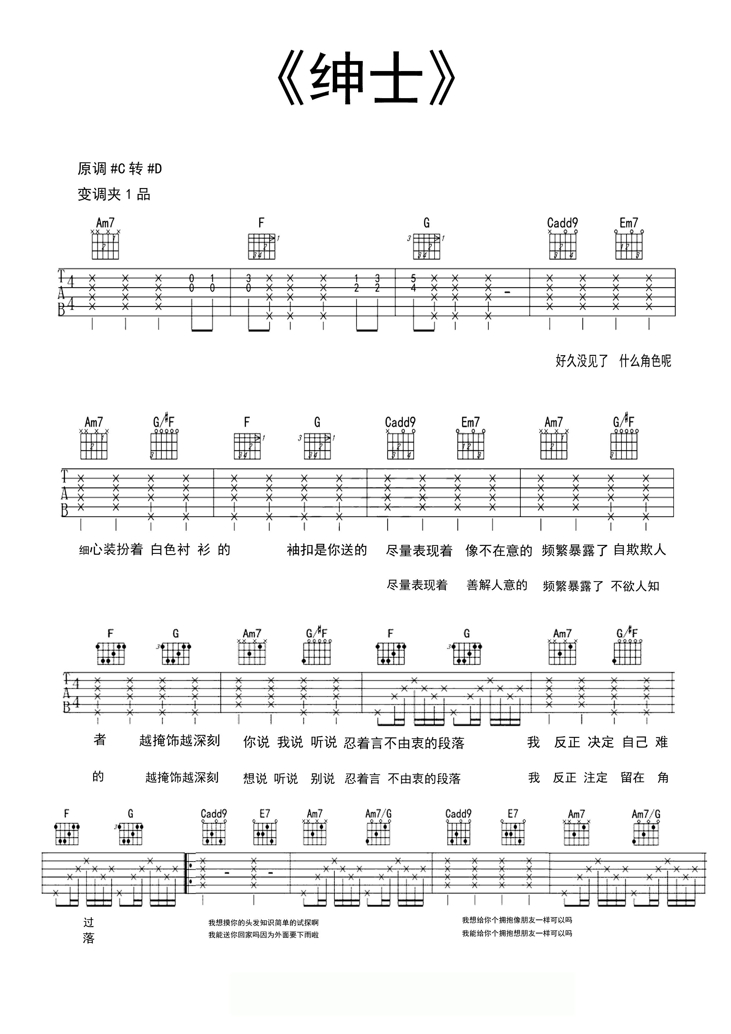 纸短情长吉他谱 C调 吉他弹唱+教学视频