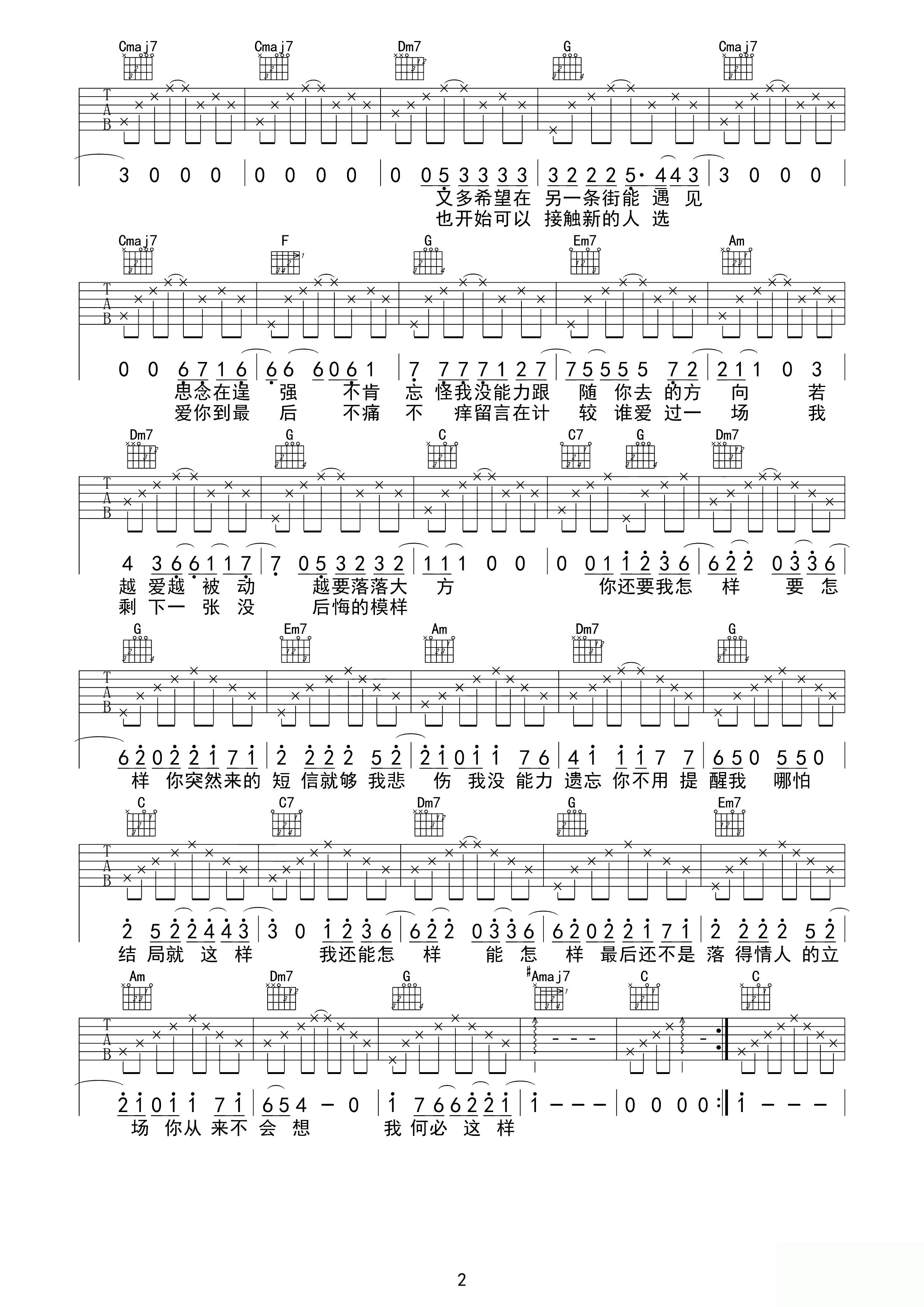 无名之辈吉他谱_陈雪燃_C调原版_弹唱六