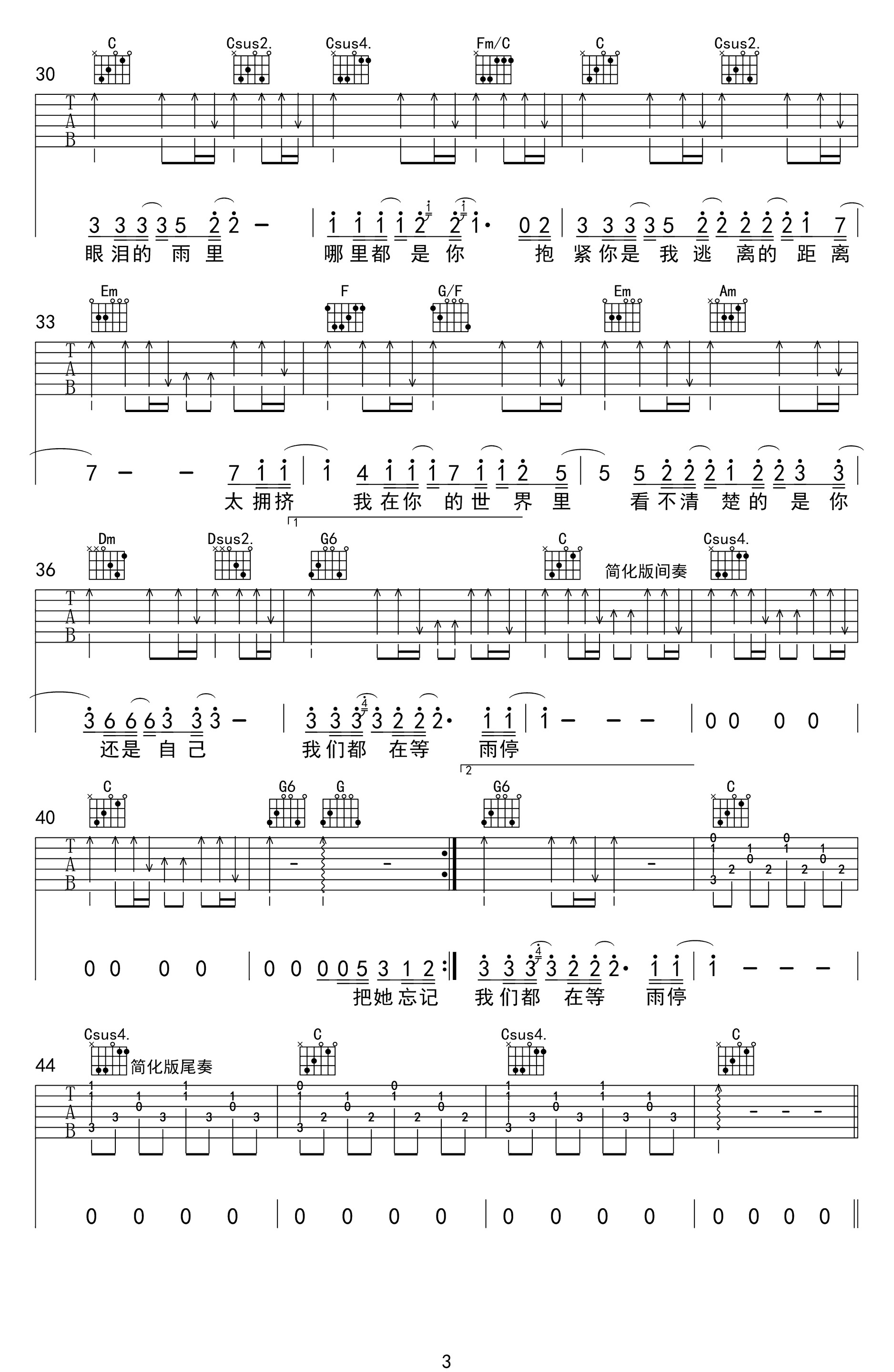 雨巷吉他谱 崔开潮 高清弹唱谱 《雨巷