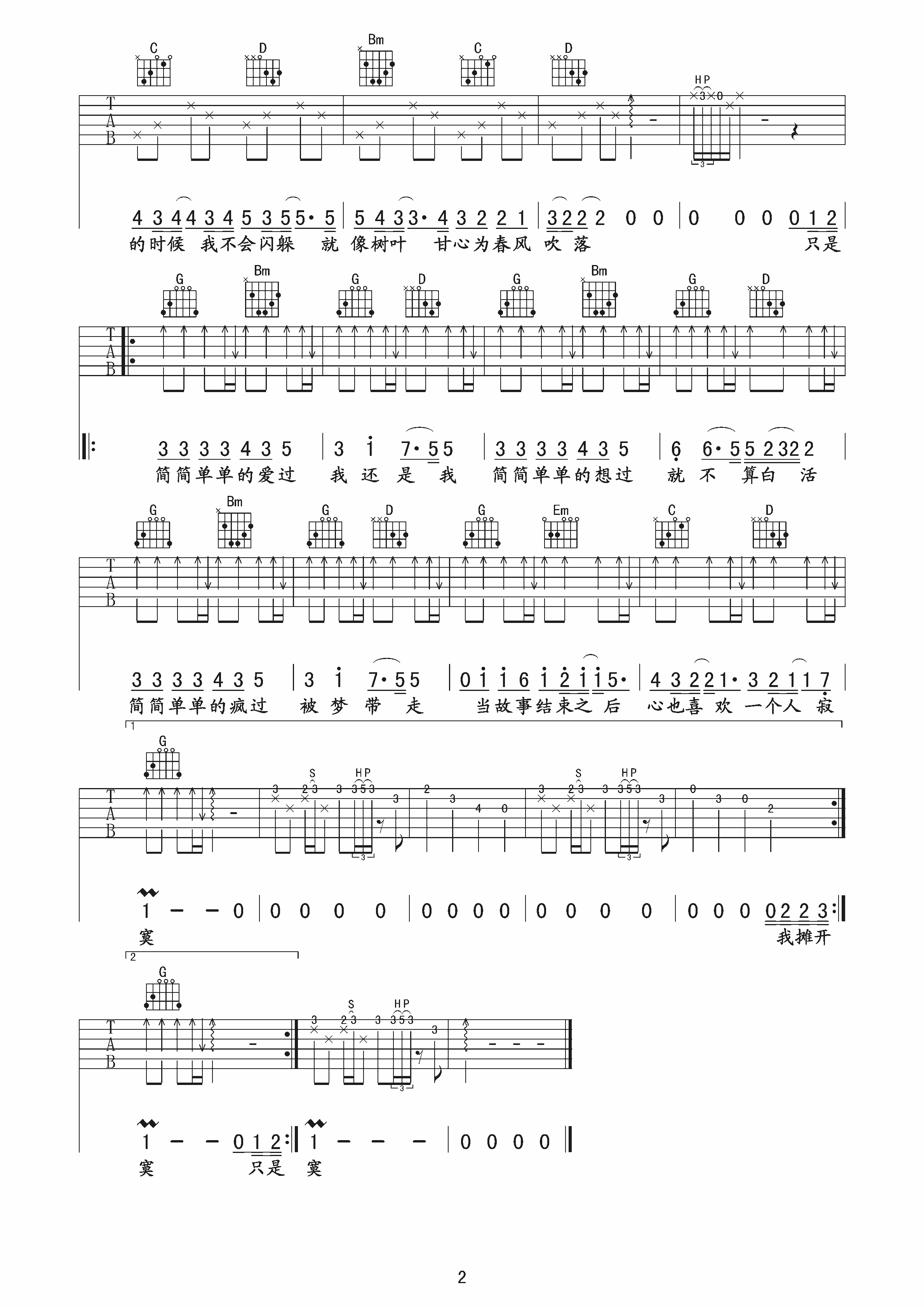 一直很安静吉他谱_G调_阿桑《仙剑》主